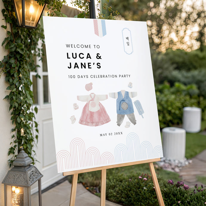 0304 Korean Twin Siblings Hanbok 100 day Bae-Il welcome sign template