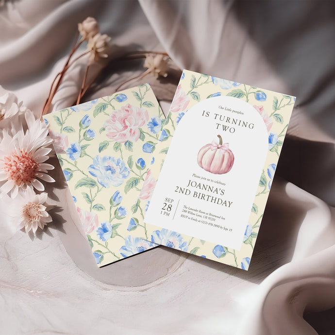 0316 pink pumpkin birthday invitation template