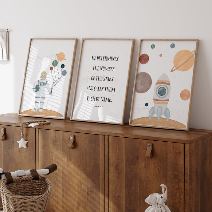 Space astronaut boys bible verse wall art print 07-19301