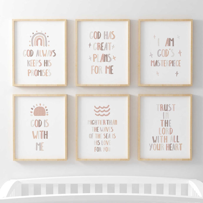 set of 6 neutral Christian kids bible verse art prints 07-183