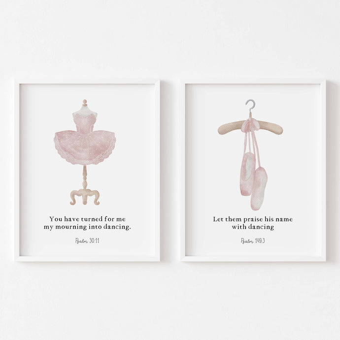 Watercolor pink ballerina bible verse set of 2 art prints 07-176
