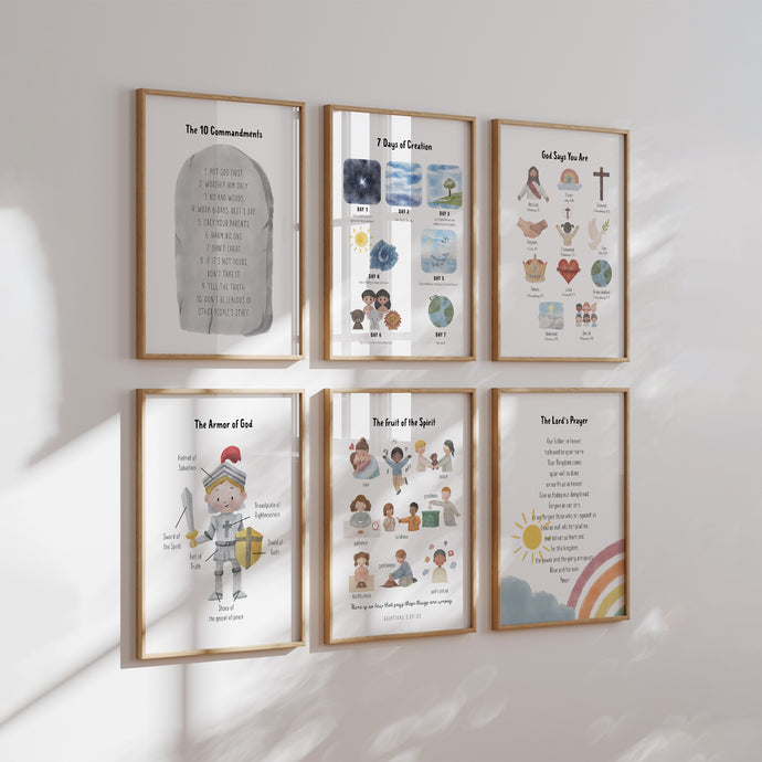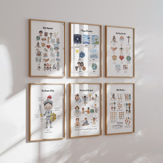 set of 6 Christian kids educational art prints 07-179