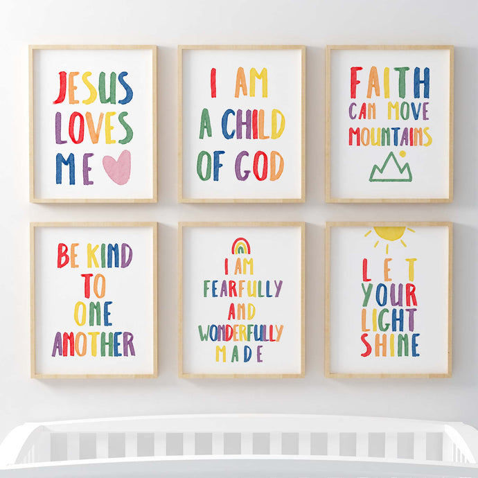 set of 6 colorful let your shine Christian kids bible verse art print 07-123