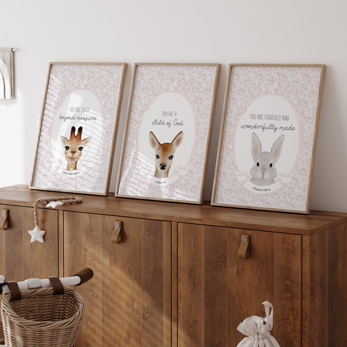 Watercolor pink baby animal bible verse set of 3 art print 07-16301