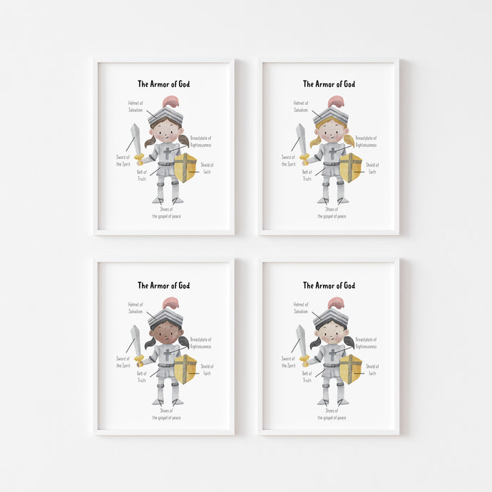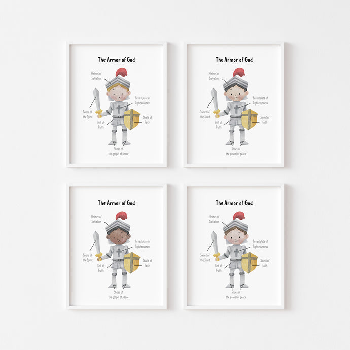 Watercolor Christian kids set of 4 biblical educational art prints 07-146