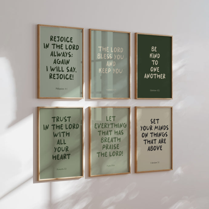Sage green Christian kids bible verse wall art set of 6 prints 07-235
