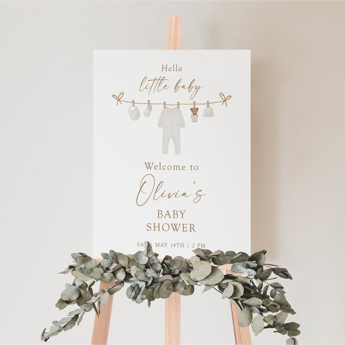 2031 Neutral Hello Little Baby Shower Welcome Sign Template, Editable Digital Download