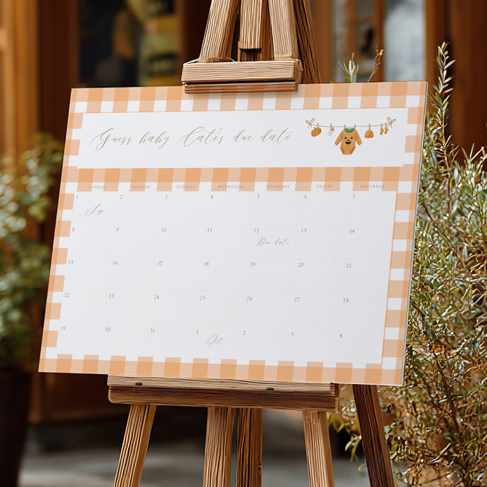 Fall pumpkin baby shower due date calendar, guess the arrival, baby shower game, digital download, editable template, 2028