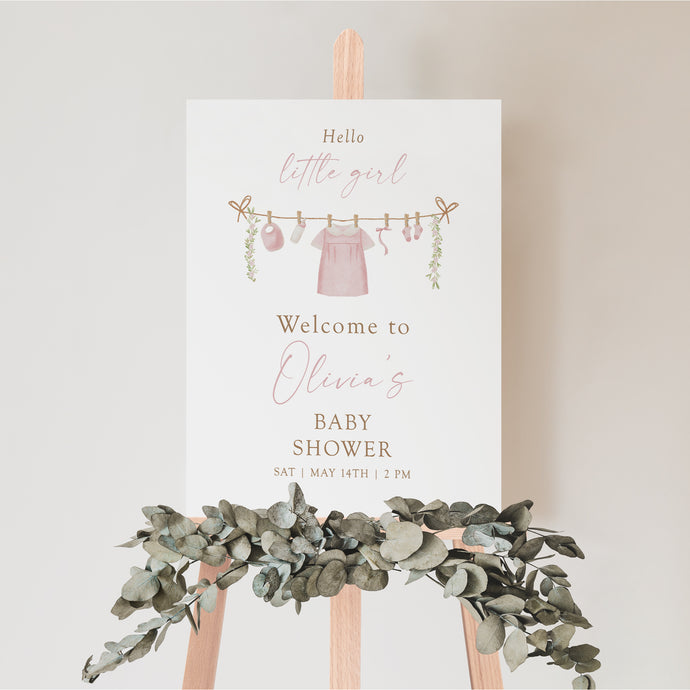 Hello Little Girl Pink Baby Shower Welcome Sign Template, Editable Digital Download 2031