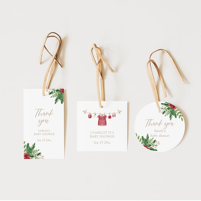 2029 A Merry Little Christmas Baby Shower Favor Tags Editable Template, Digital Download, Baby Clothesline Decor