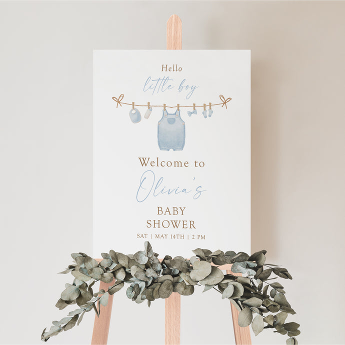 2031 Hello Little Boy Blue Baby Shower Welcome Sign Template, Editable Digital Download