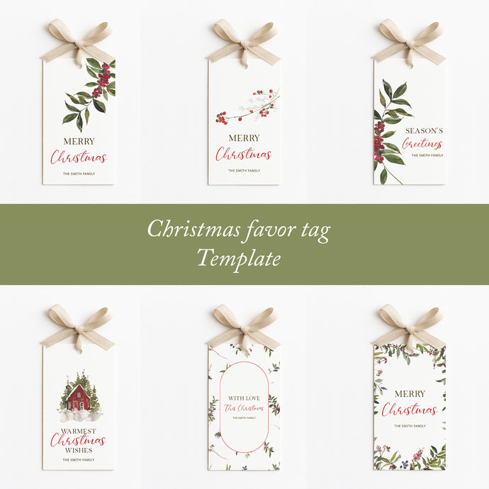 2027 Christmas Gift Tags, Holiday Favor Tag Template