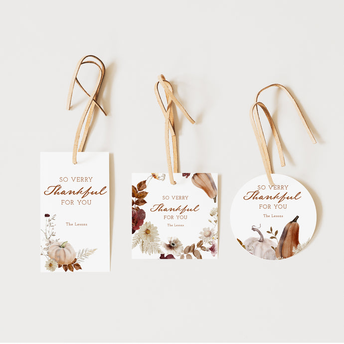 2026 Floral Grateful and Blessed Favor Tag Template, Fall Thank You Tags Editable, Autumn Wedding Baby Shower Gift Tag Printable