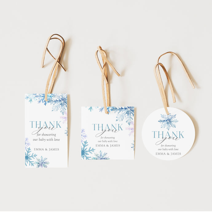 2024 Blue Snowflake Baby Shower Favor Tag, Winter Baby Shower Thank You Label, Holiday Shower Favor Tags, Editable Template