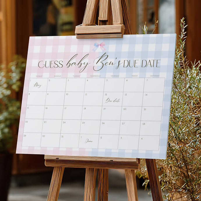 Blue or pink gender reveal baby shower arrival due date calendar template 2014