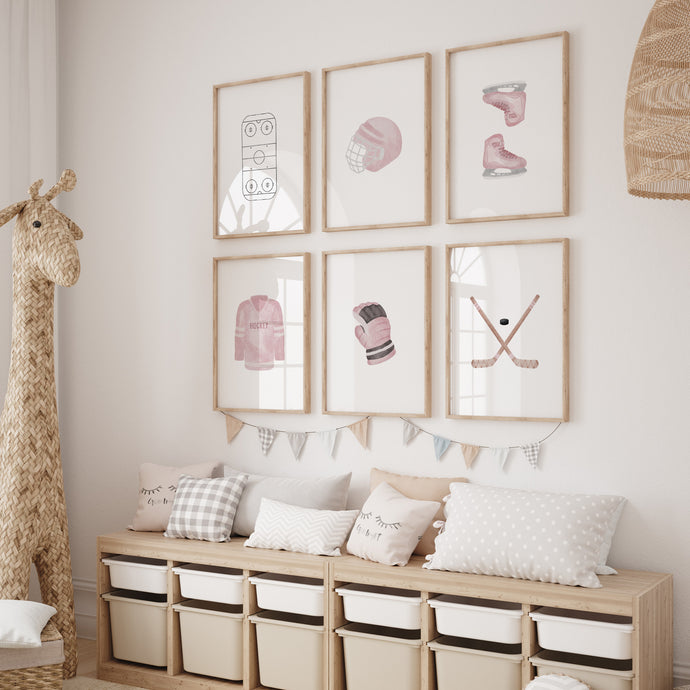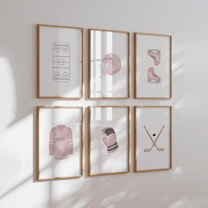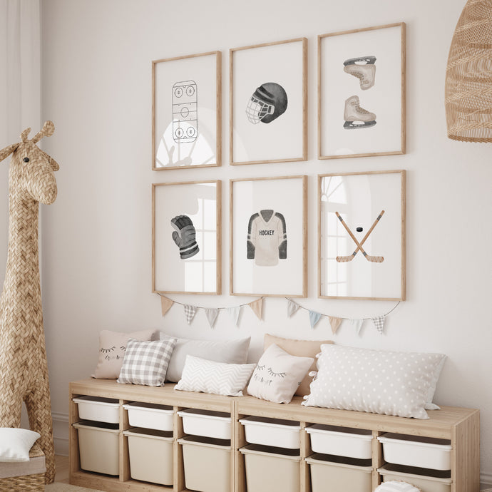 Watercolor Black neutral hockey set of 6 art print 07-31304