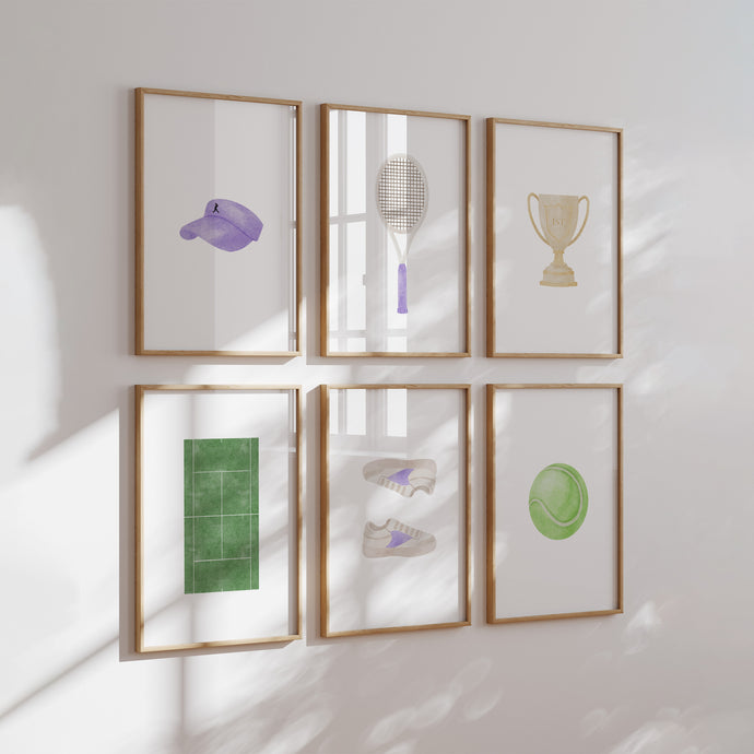 Purple watercolor tennis set of 6 wall art prints 07-27712