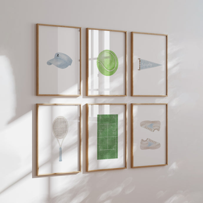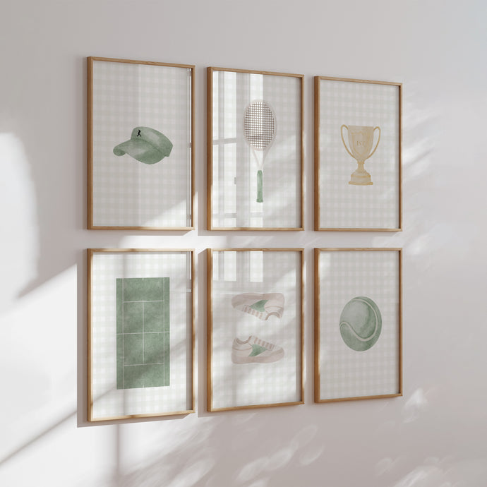 Sage green watercolor tennis set of 6 wall art prints 07-27711