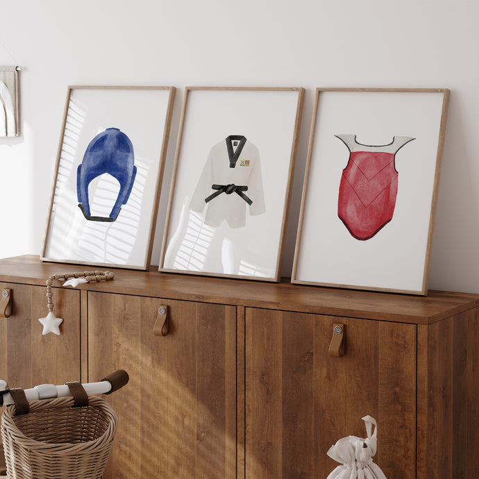 watercolor Taekwondo Martial arts gear and Dobok set of 3 art prints 07-27503