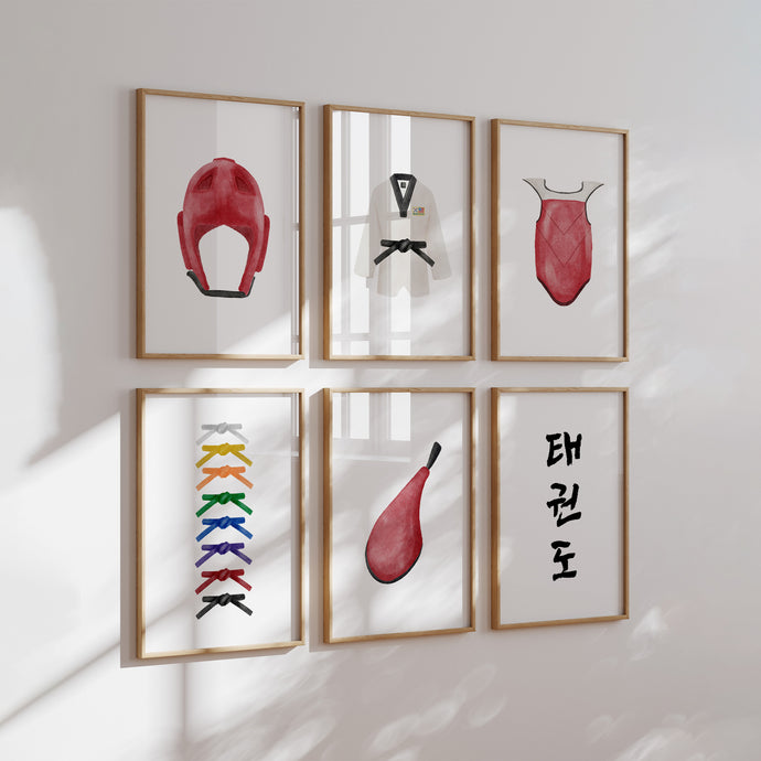 watercolor Taekwondo Martial arts gear and quote set of 6 art prints 07-27501