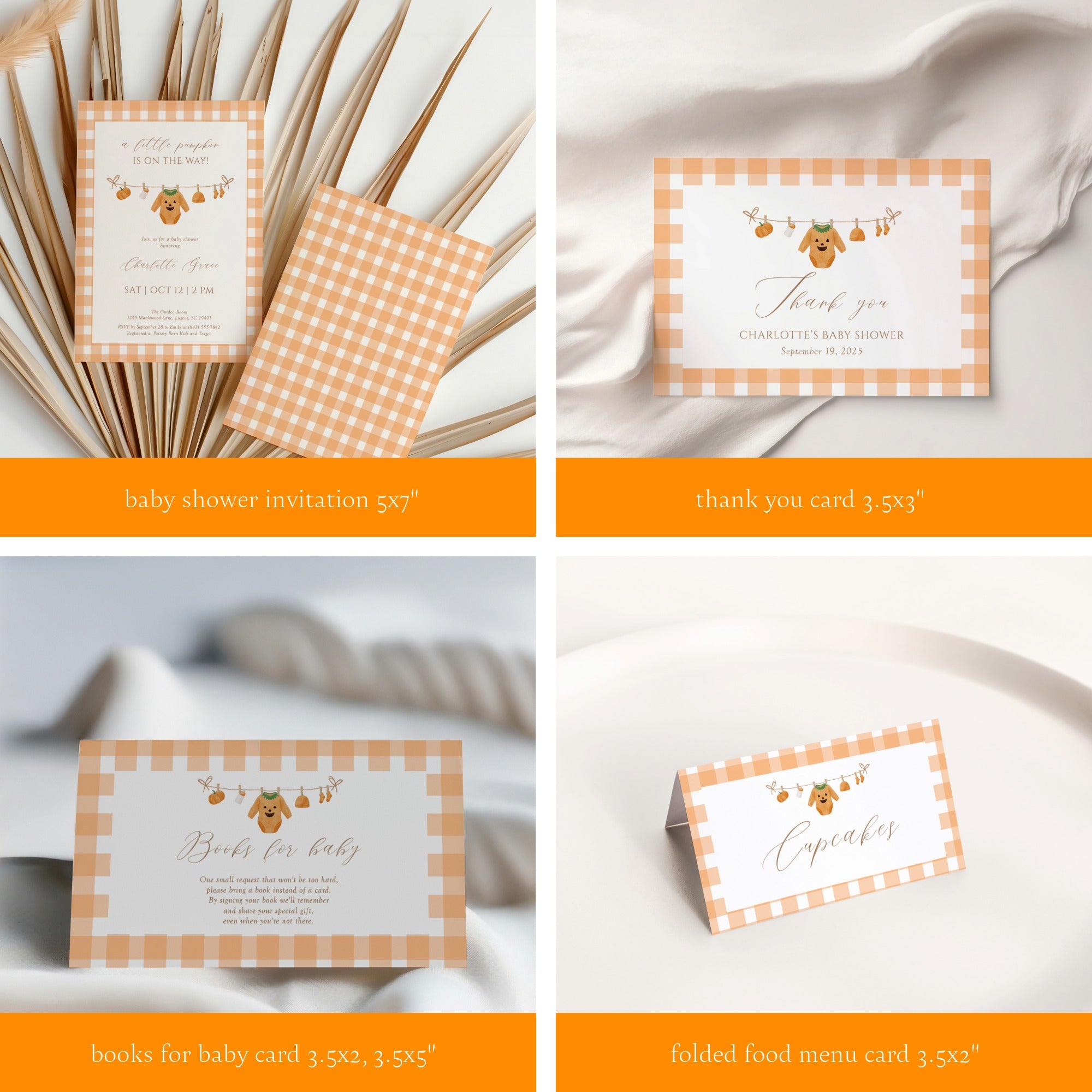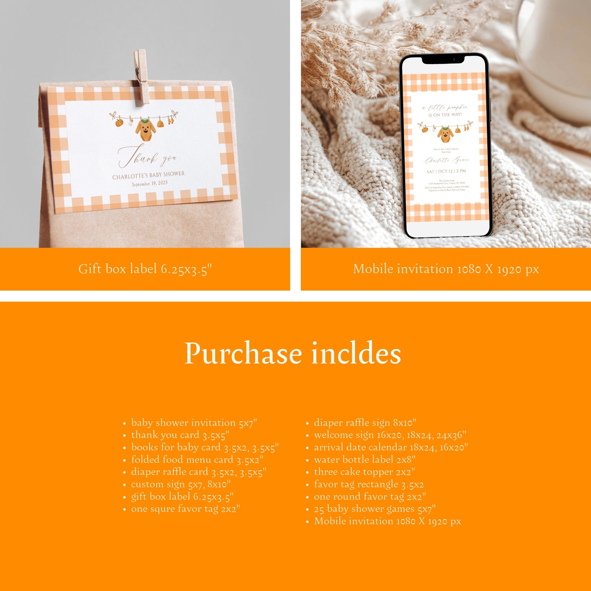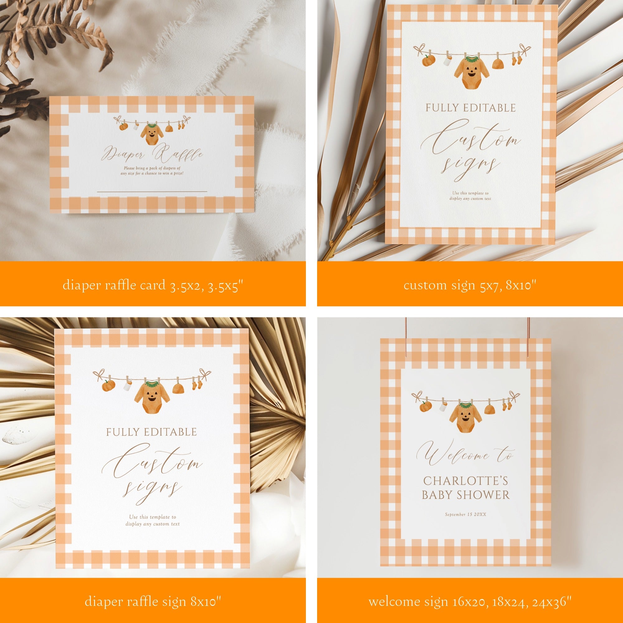 Celebrate the upcoming arrival with elegance using the "Little Pumpkin is on the Way" fall Halloween baby shower invitation party bundle. This thoughtfully curated set combines seasonal charm with refined design, perfectly capturing the warmth of autumn and the excitement of a new beginning. Ideal for hosting a memorable and stylish baby shower, this bundle offers all the essentials to set an inviting, festive tone for your special event.