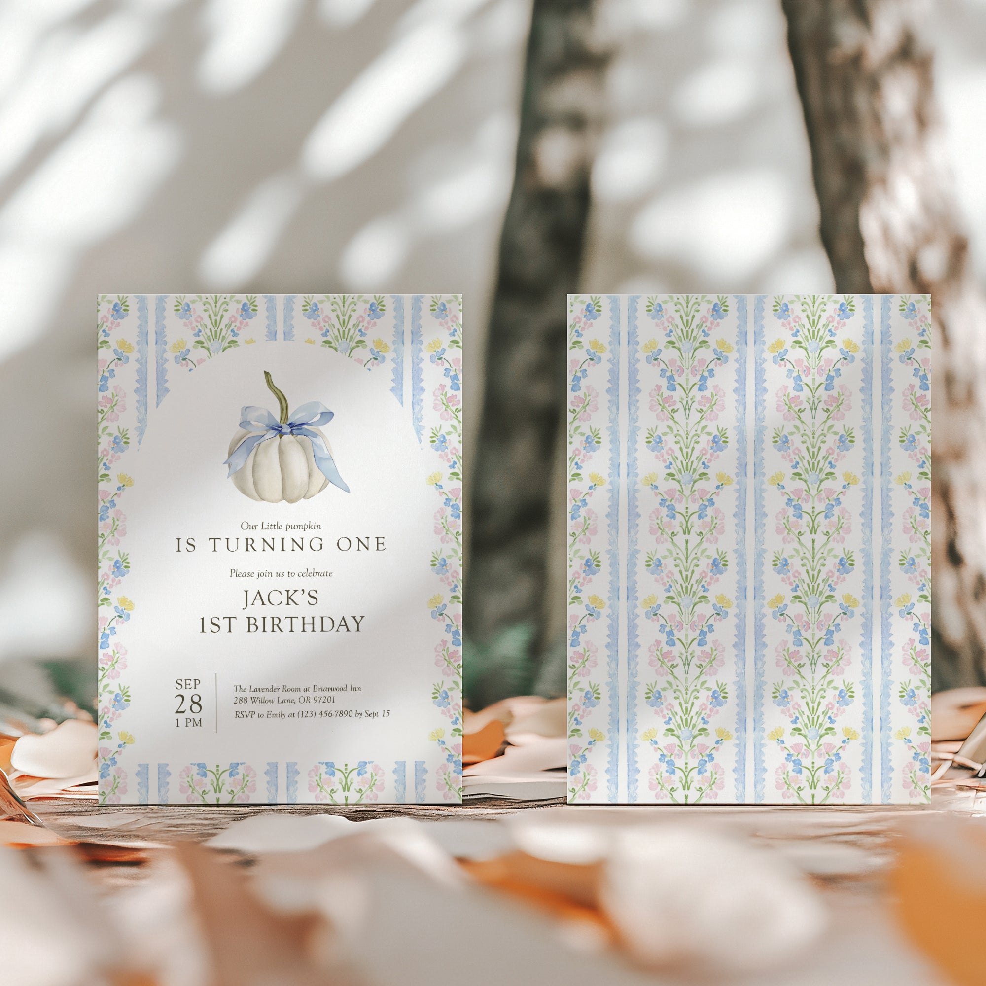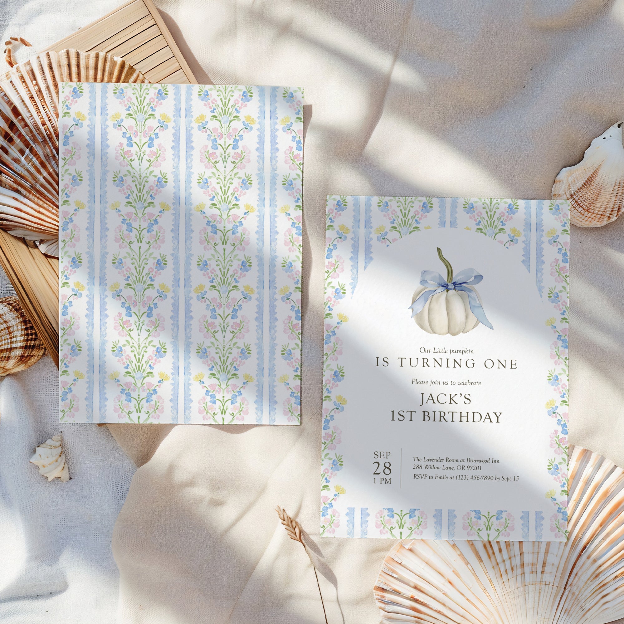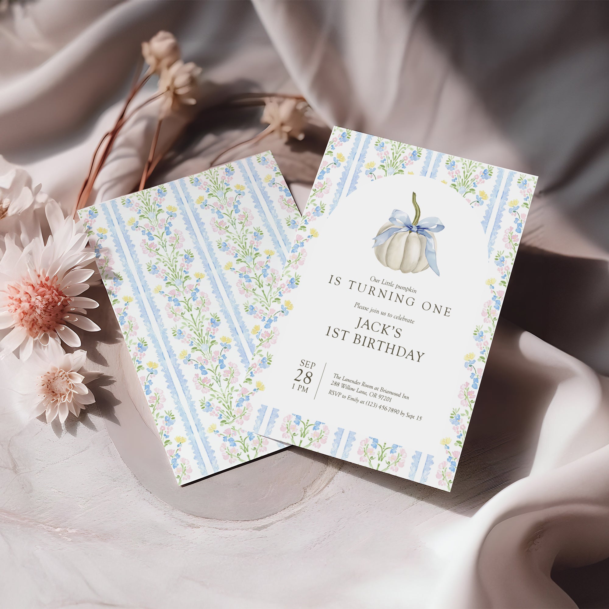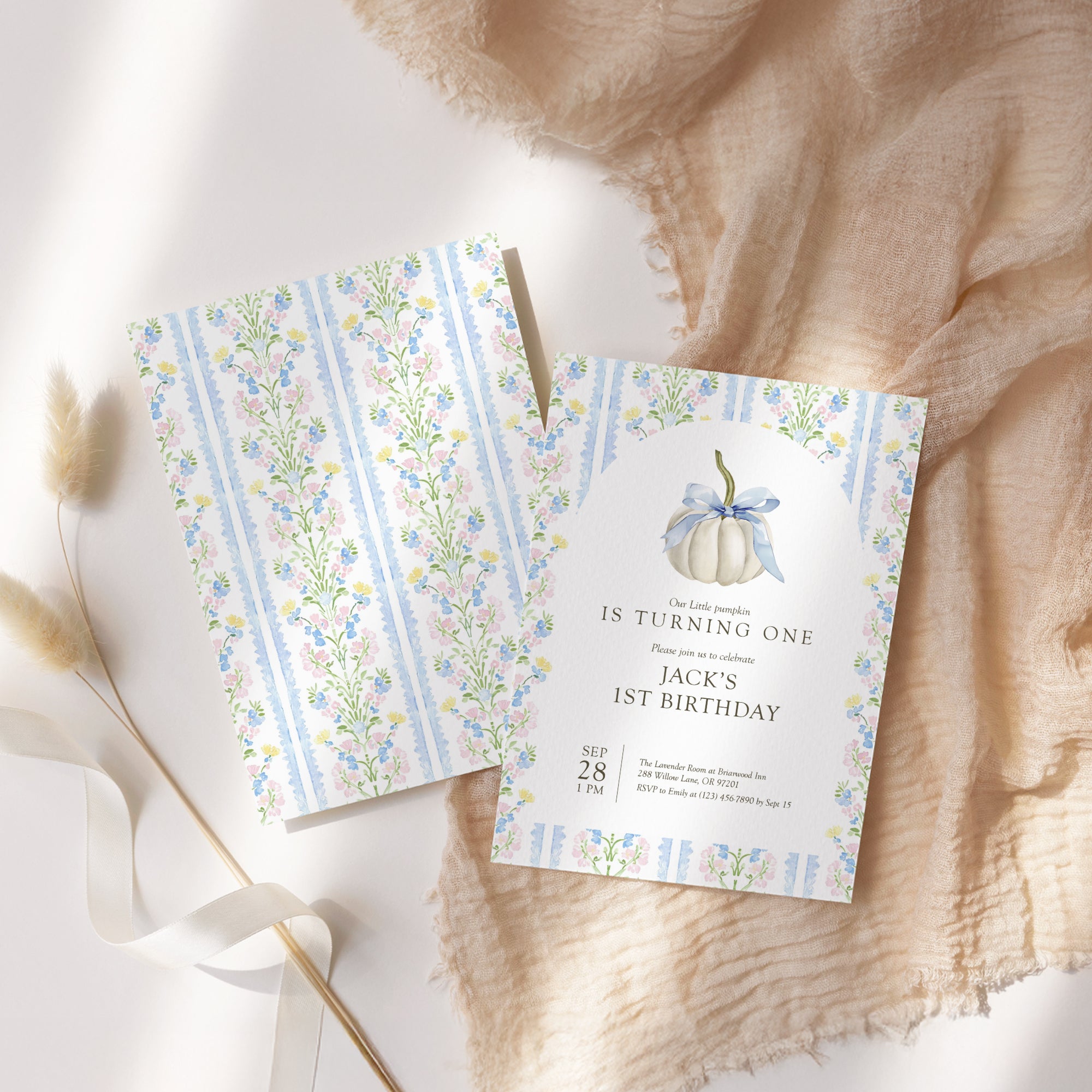 0316 blue ivory pumpkin birthday invitation tempmlate