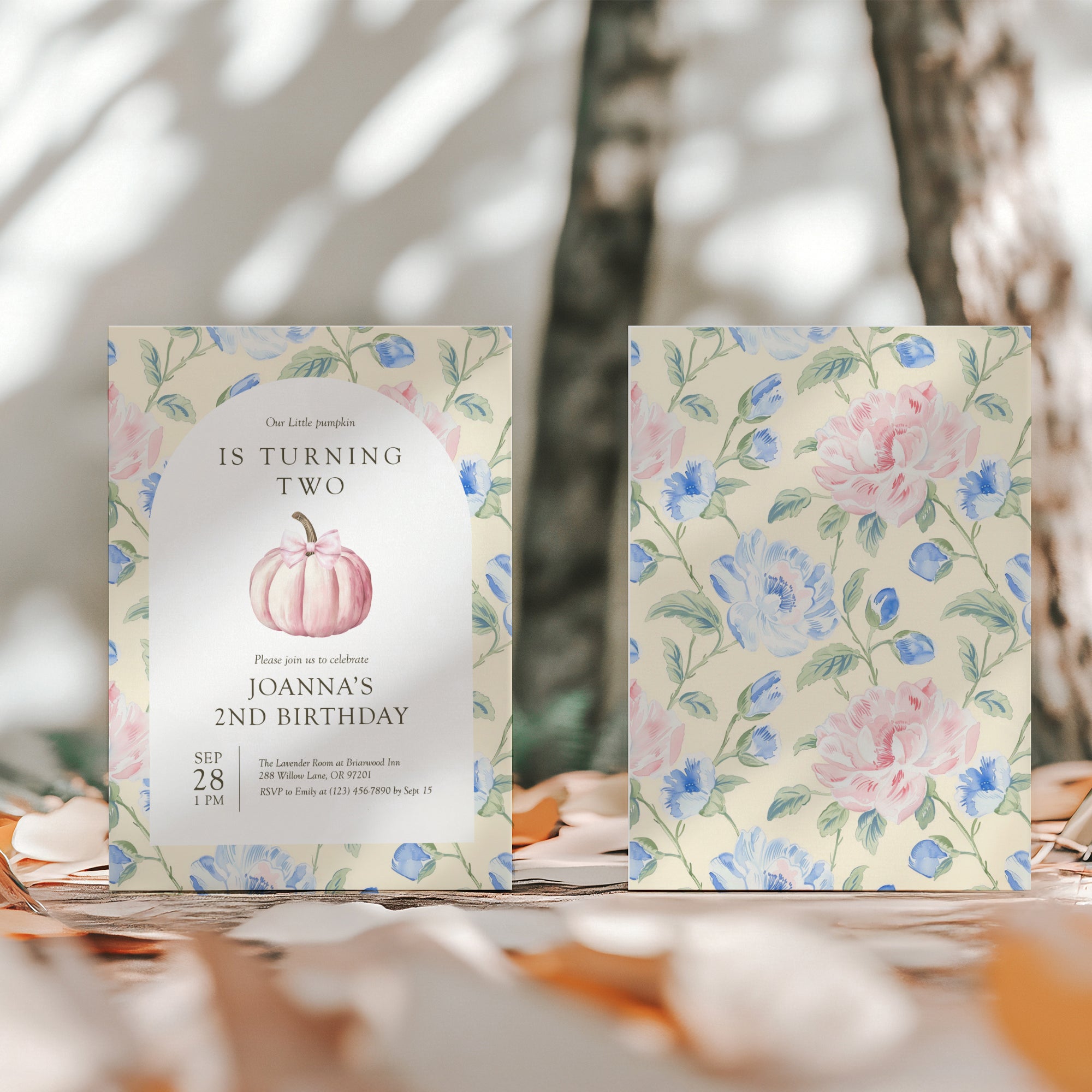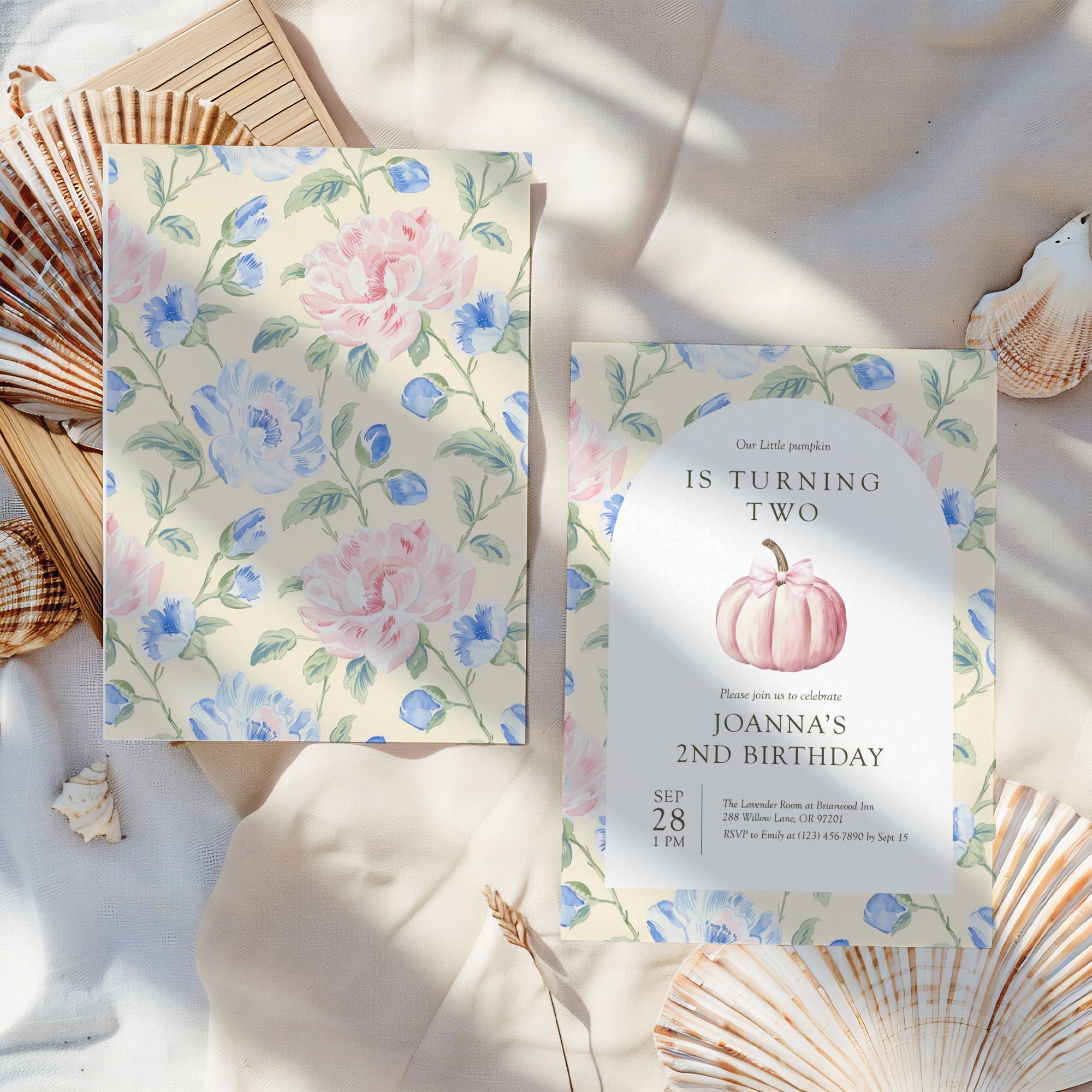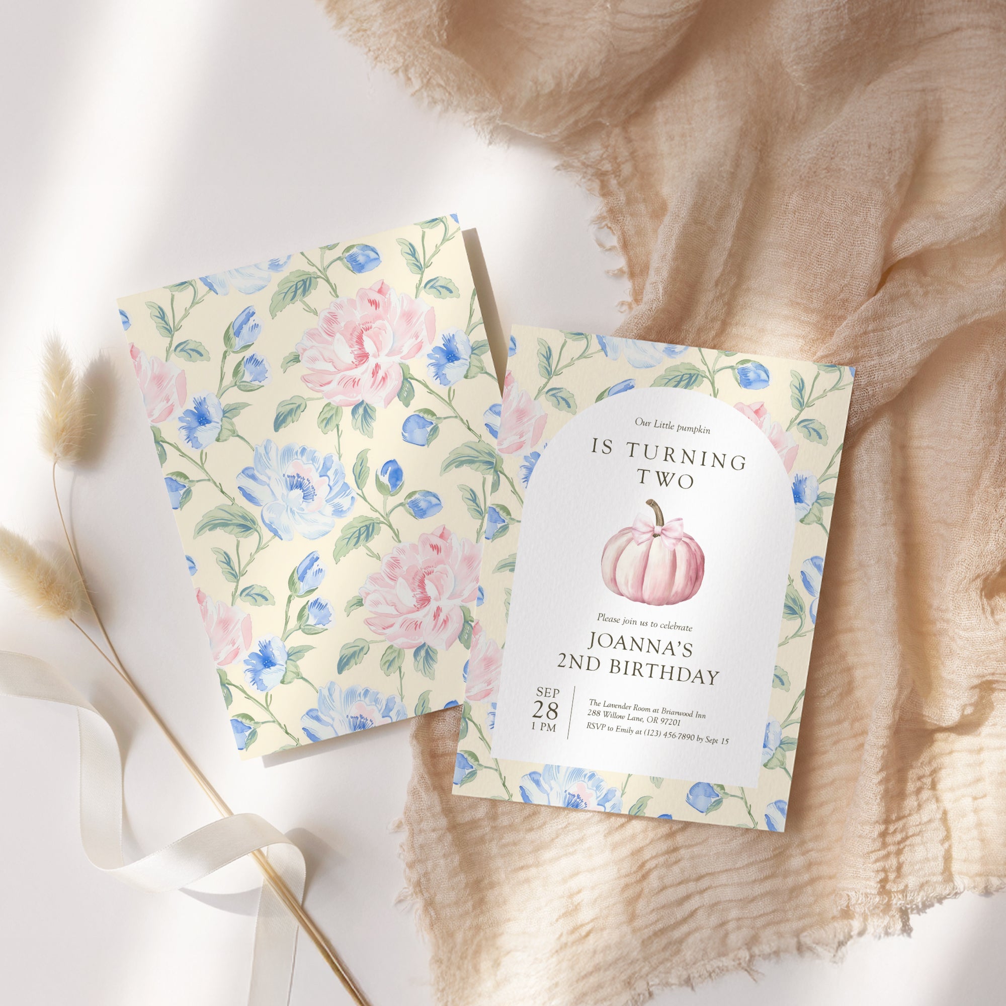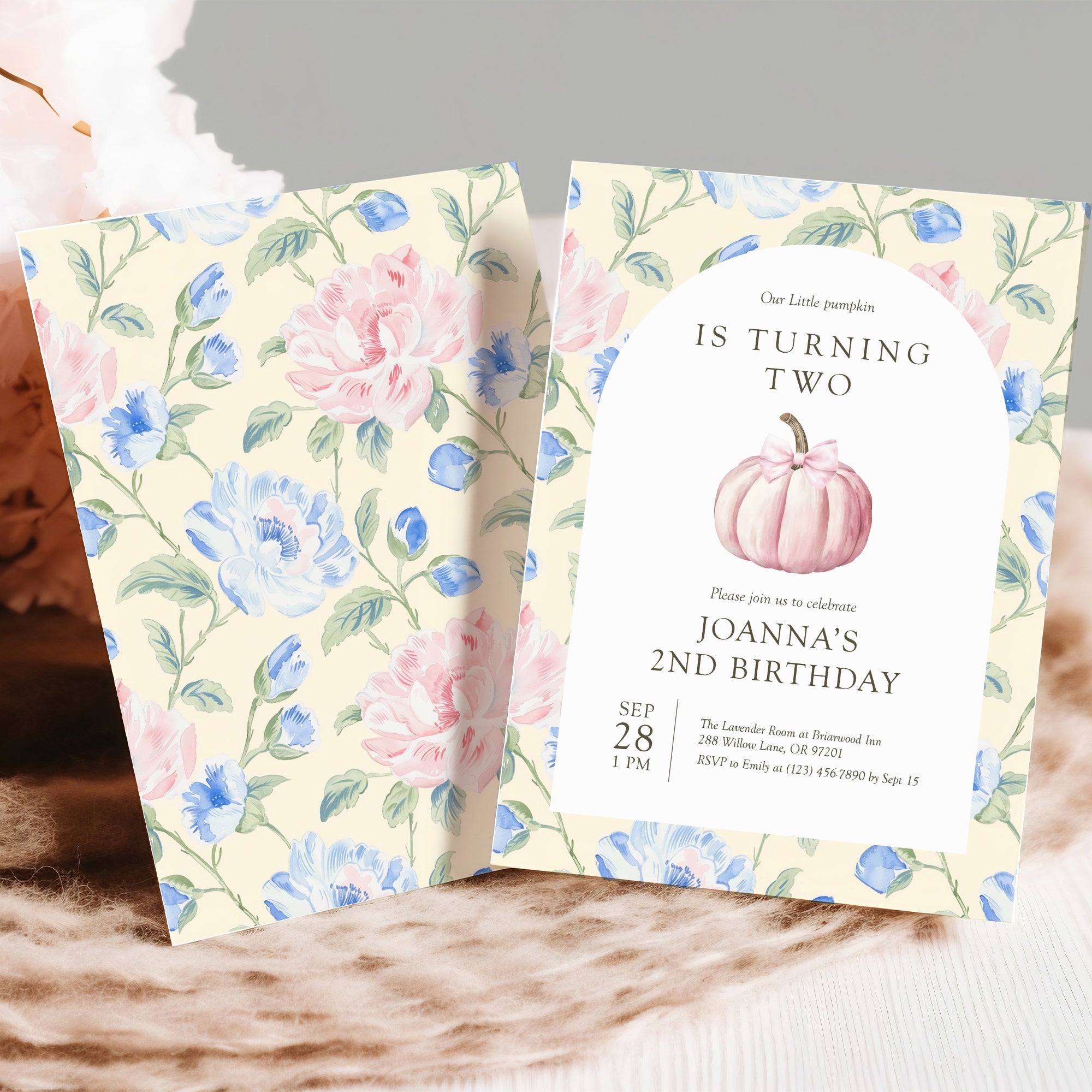 0316 pink pumpkin birthday invitation template