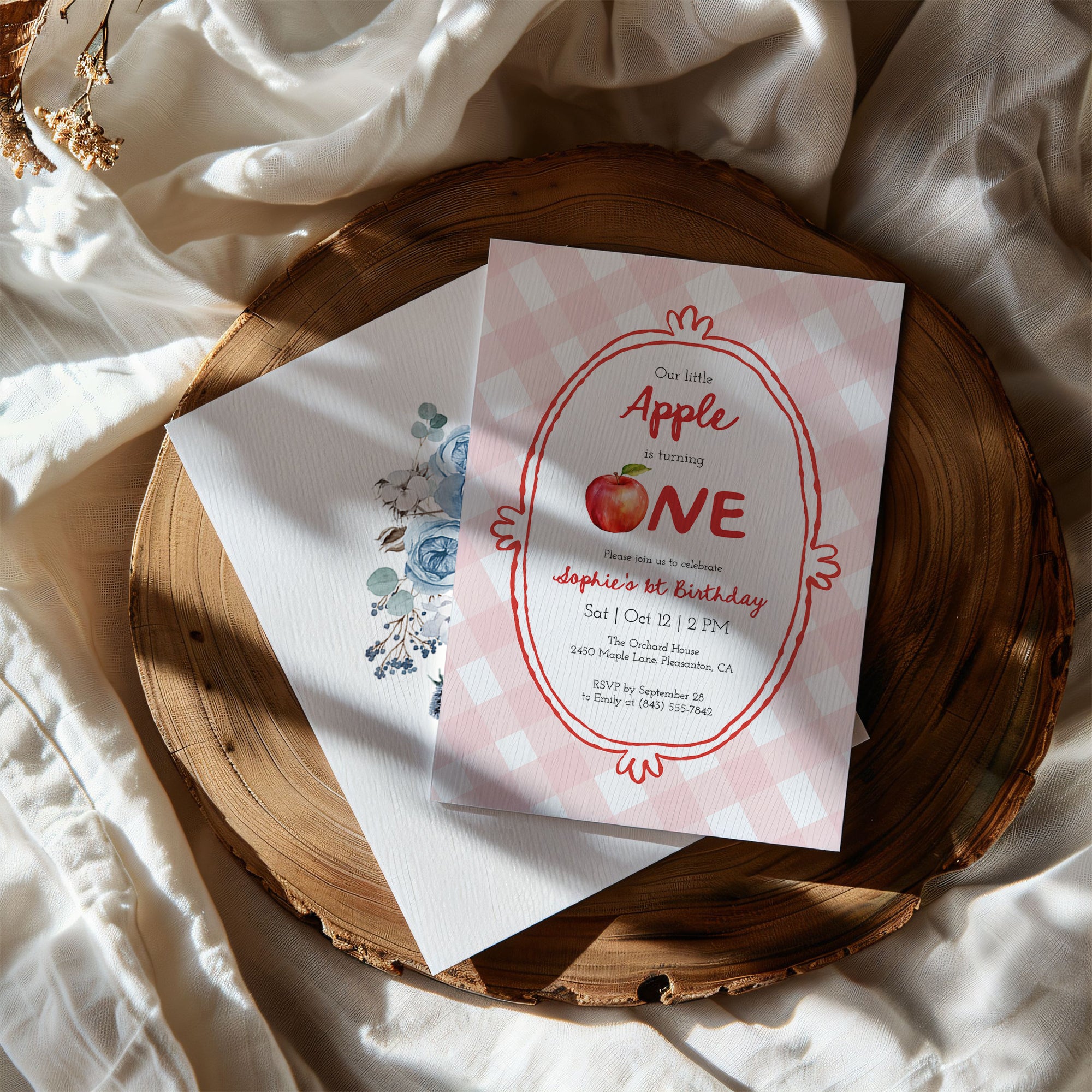 0317 pink little apple ONE birthday invitation