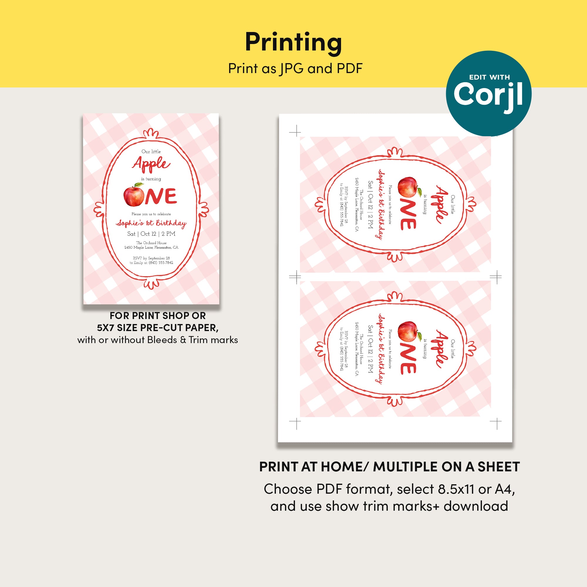 1. Edit text in Corjl, download & print yourself