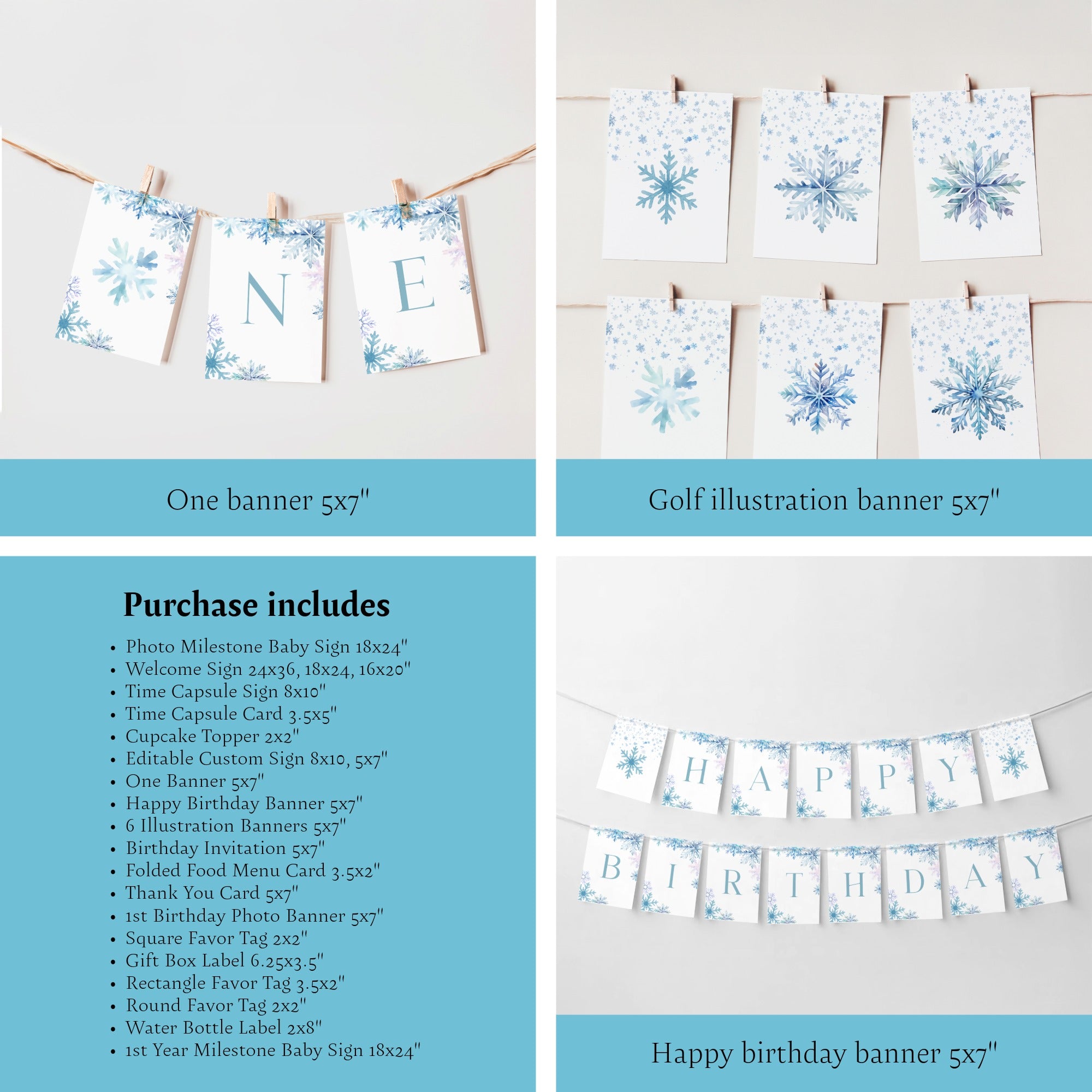 Celebrate your little one’s special day with our Blue Snowflake Winter Wonderland 1st Birthday Templates! This charming digital download features beautifully designed invitations, banners, and more, perfect for creating a magical winter-themed celebration. Easy to customize and print, these templates make party planning a breeze. Ideal for celebrating your child's first birthday in style! Grab your Blue Snowflake Winter Wonderland templates today and make your event unforgettable!
