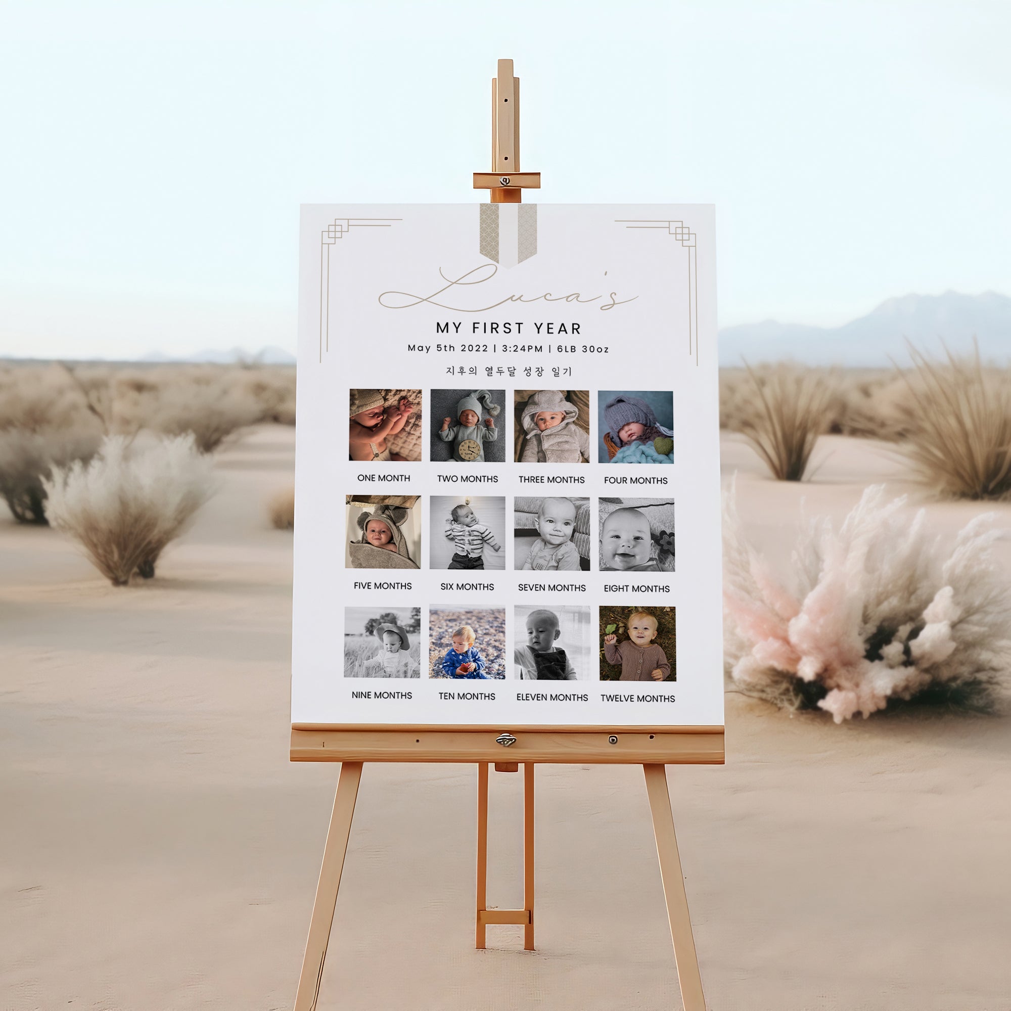 Celebrate your little one's first birthday with our Beige Korean Traditional Doljanchi 1st Birthday Photo Milestone Sign! This beautiful digital download captures the essence of a cherished Doljanchi celebration, perfect for commemorating this special milestone. Instantly print and display it for memorable photo ops and keepsakes. Easy to download and customize, it’s a delightful way to honor your child's heritage and create lasting memories. Make your Doljanchi unique—order yours today!