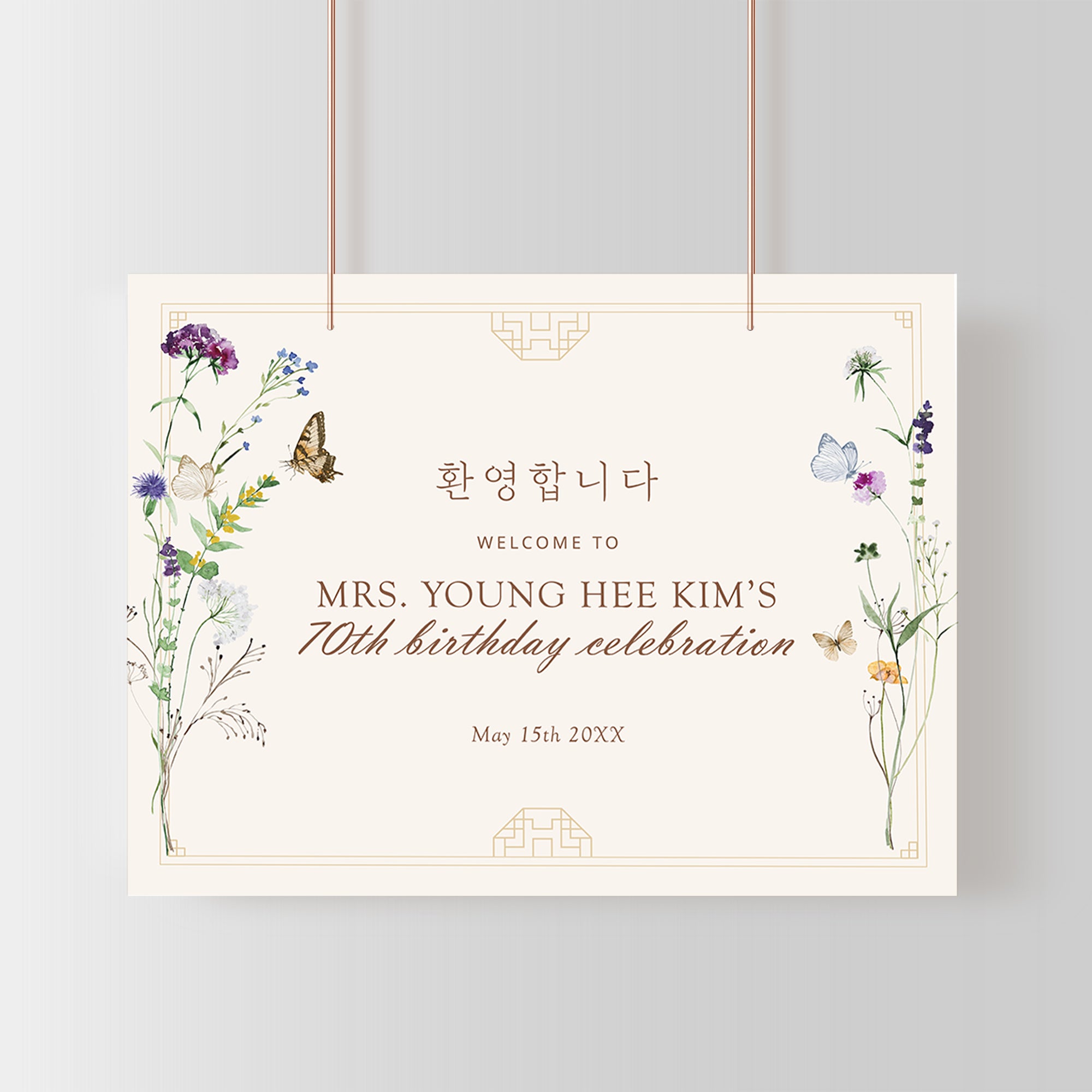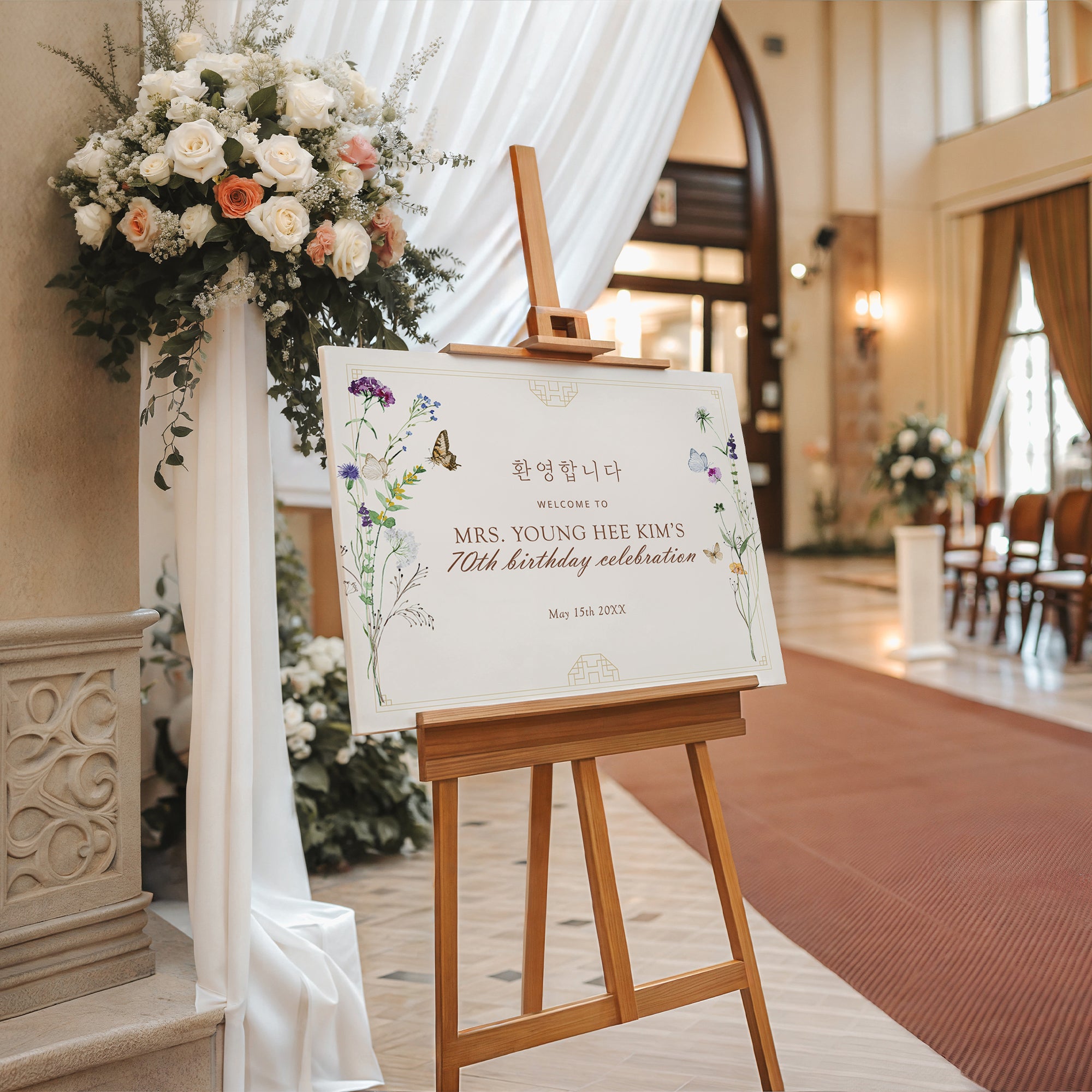 0322 Korean 70th Birthday Chilsoon Party Welcome Sign, Editable sign Template, Digital Download