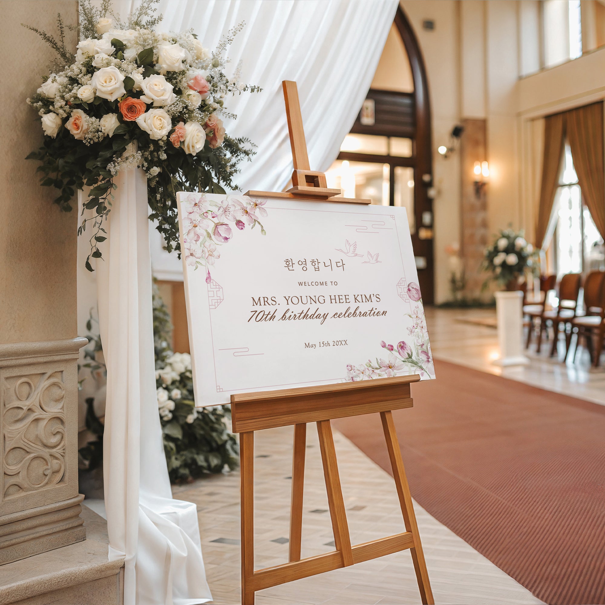 Celebrate a milestone with our Korean 70th Birthday Chilsoon Party Welcome Sign! This editable template features a stunning traditional design, perfect for honoring your loved one’s special day. Instantly downloadable, you can customize it to suit your celebration needs. Ideal for both personal and festive decor, this digital download adds a personal touch to your event. Make your party unforgettable with this unique sign that pays tribute to Korean culture! Perfect for printing at home or through your favorite local service.