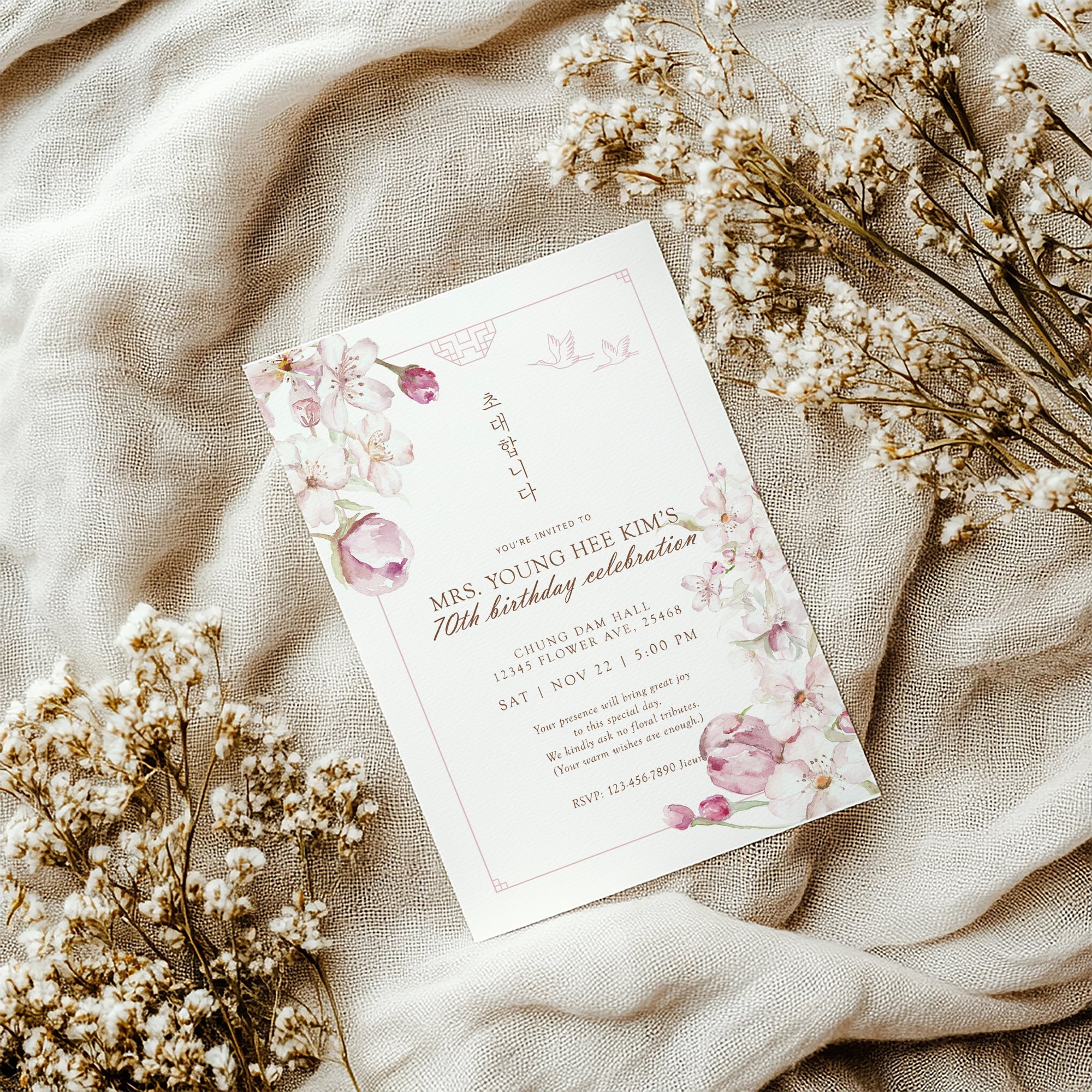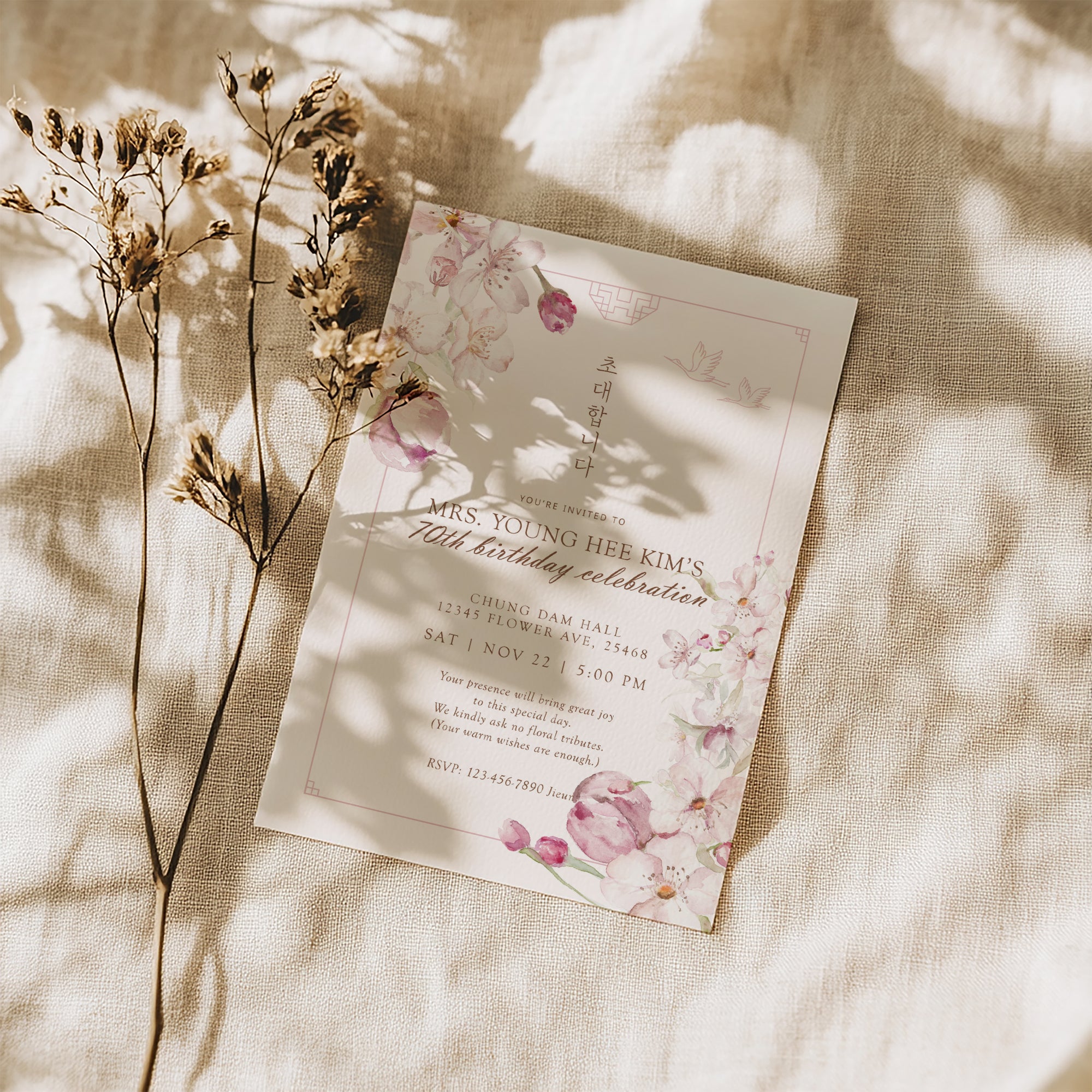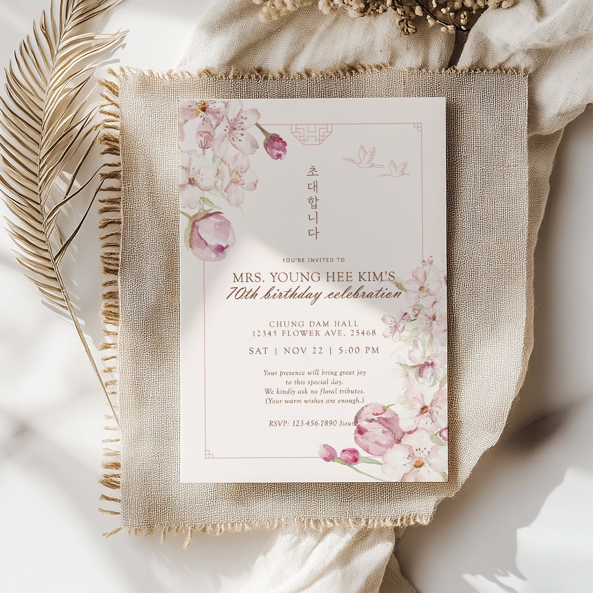 0322 Korean 70th Birthday Invitation, Editable Template with Traditional Design for Chil-Soon, Digital download