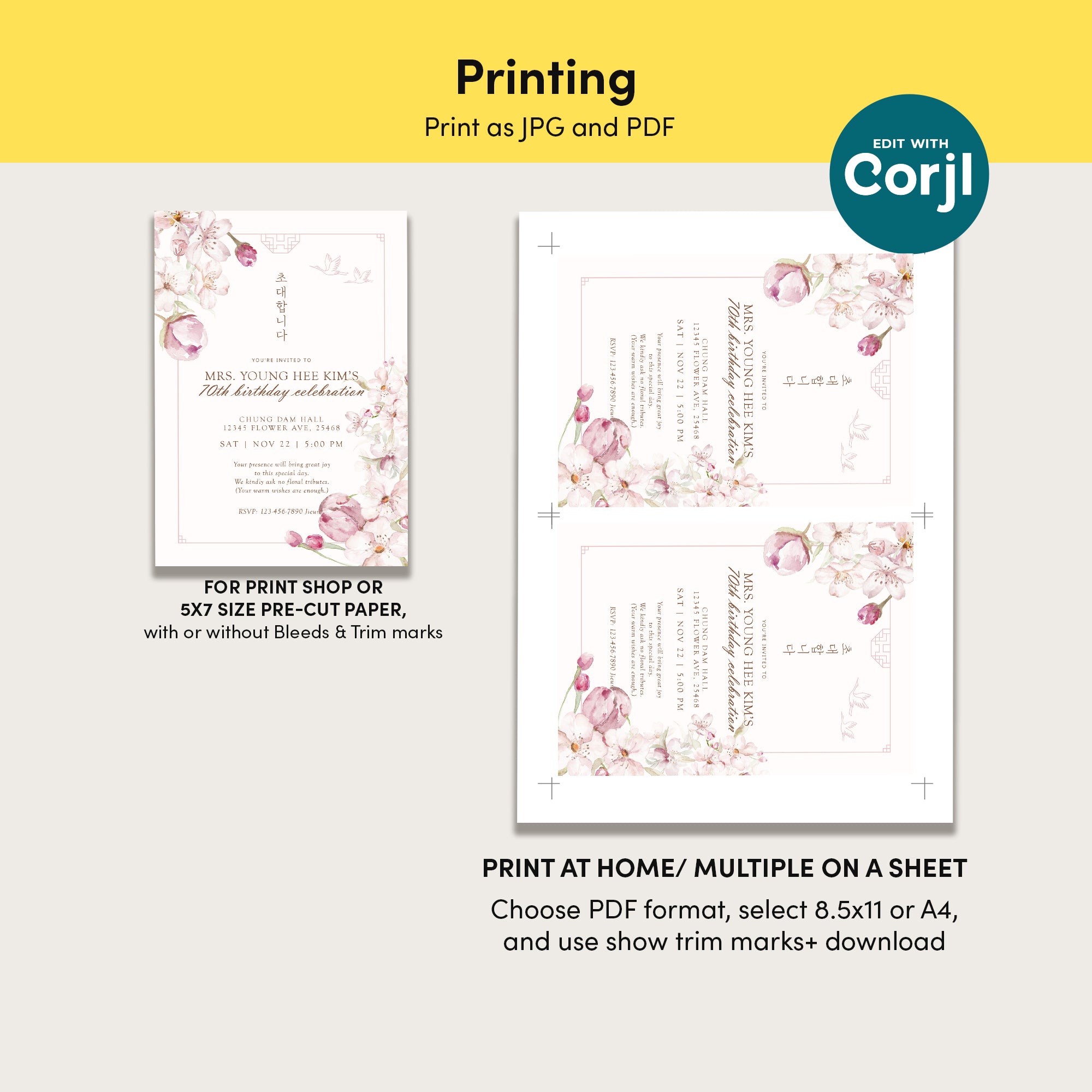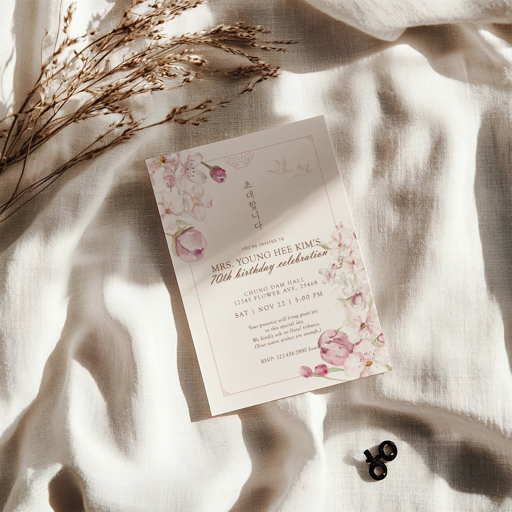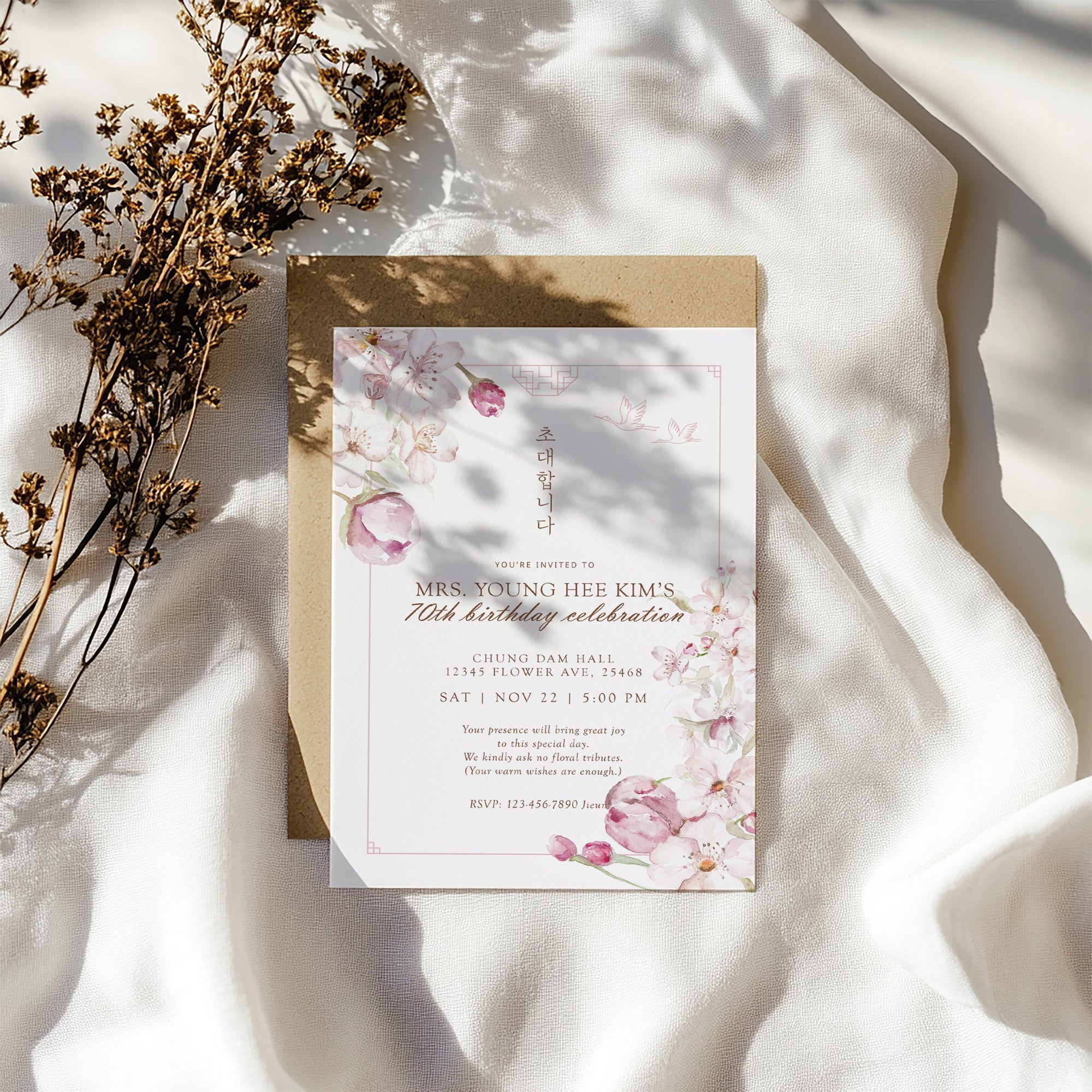 0322 Korean 70th Birthday Invitation, Editable Template with Traditional Design for Chil-Soon, Digital download