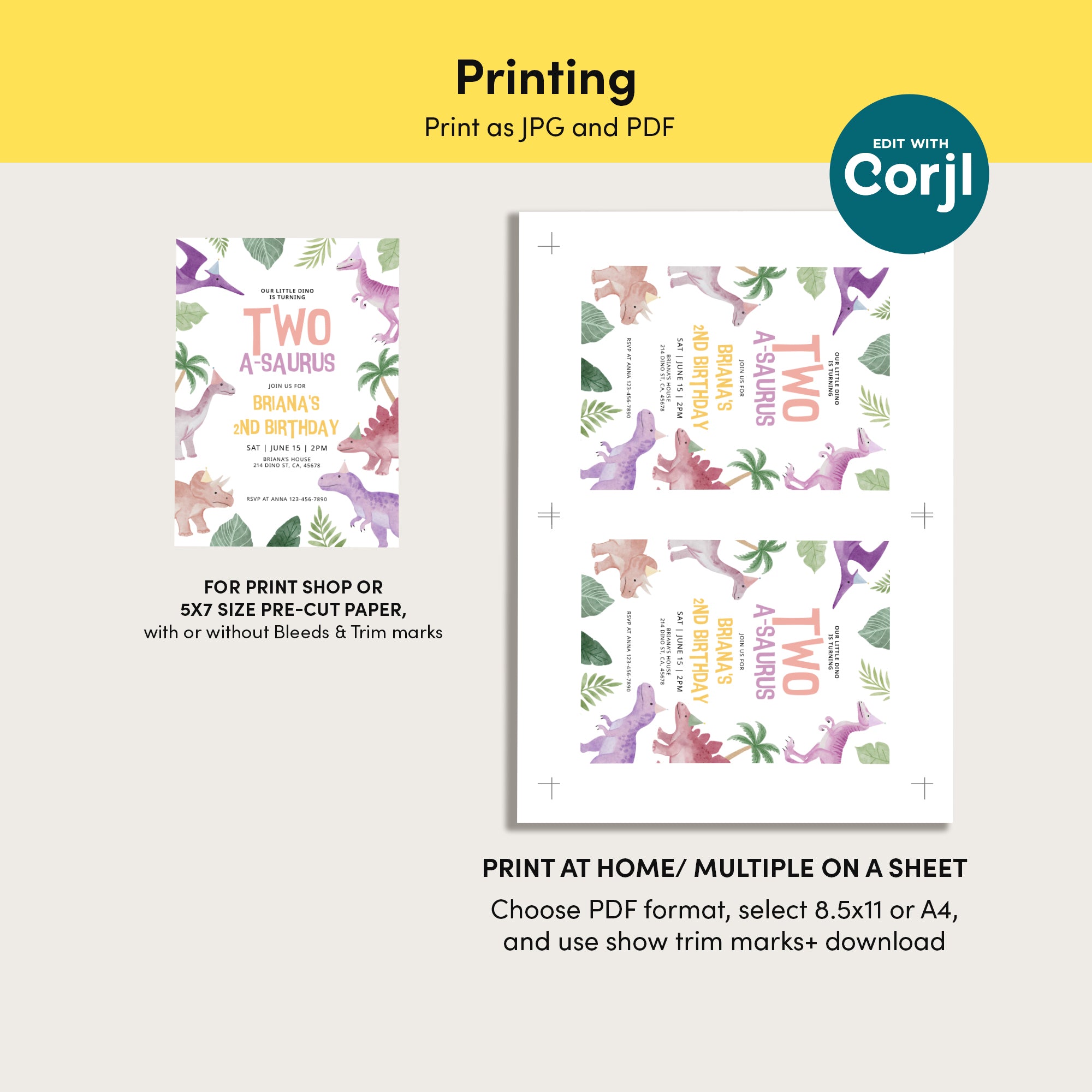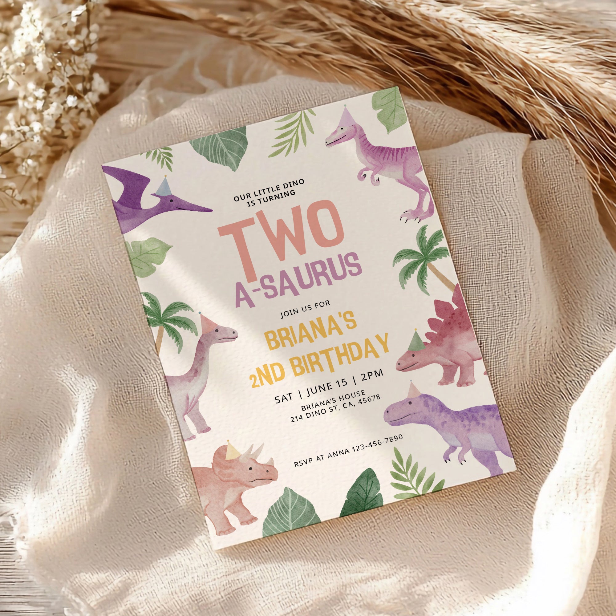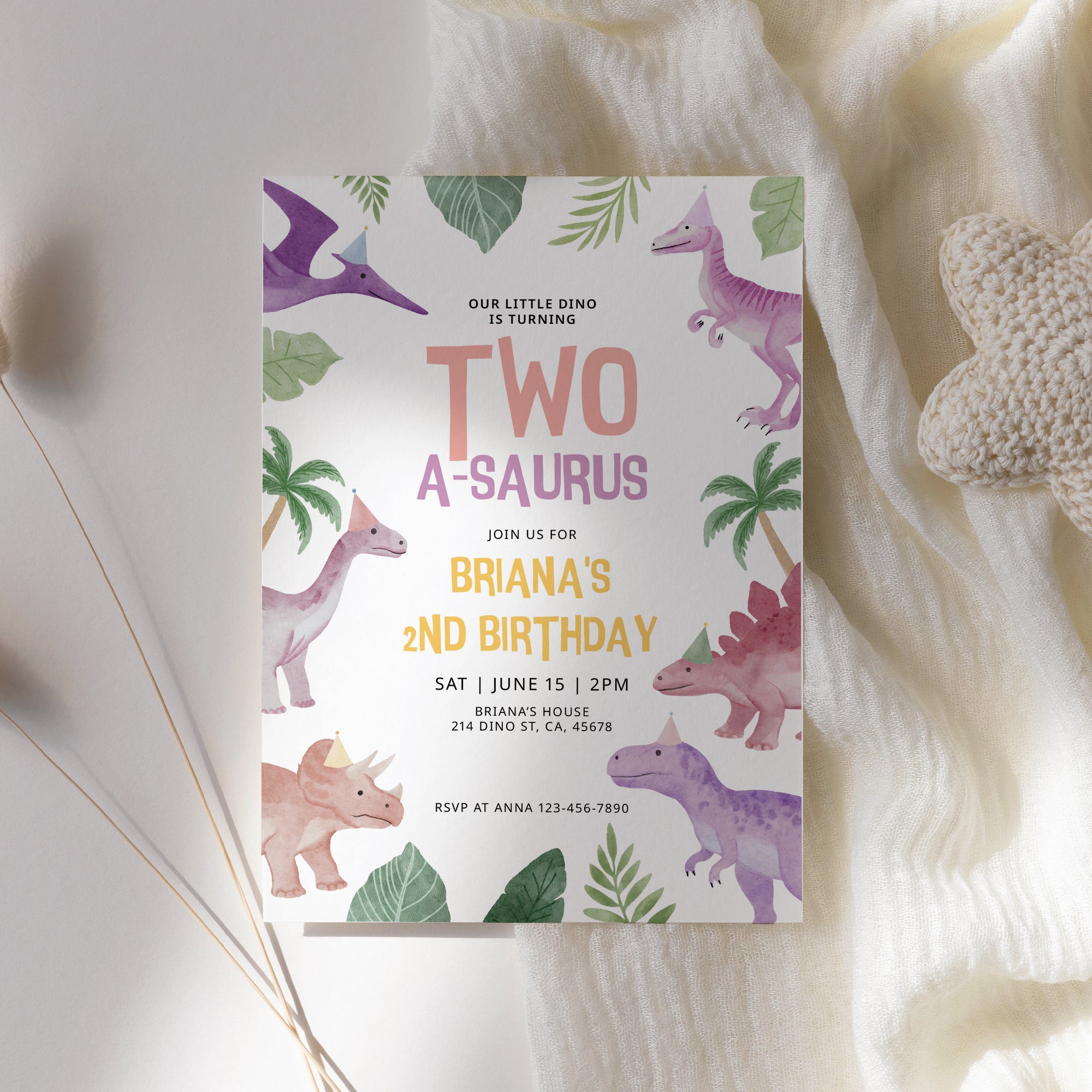 Celebrate your little one's special day with our Baby Girl Pink Purple Dinosaur Two-a-Saurus Birthday Photo Invite! This adorable, editable template makes party planning a breeze. Simply customize it to fit your needs and print from home or your favorite print shop. Perfect for a dino-themed birthday bash! Instant digital download allows for quick access, so you can start the celebrations without delay. Make your baby's birthday unforgettable with this charming invitation!