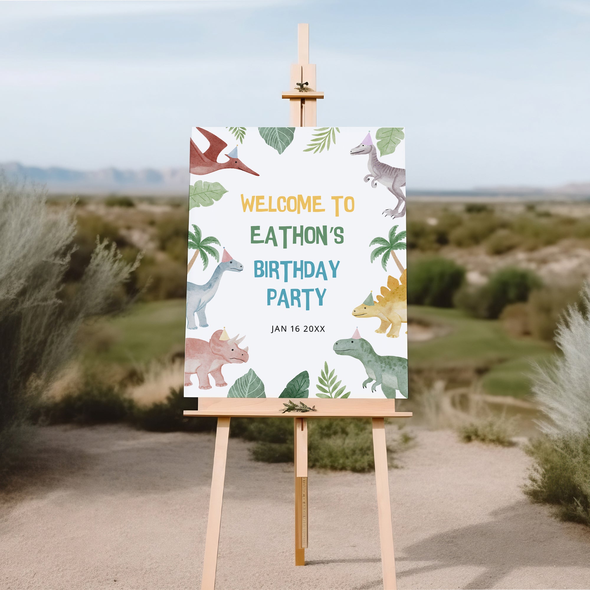 Welcome to your ultimate Dinosaur Birthday Bash! Our Dinosaur Birthday Welcome Sign is the perfect addition to your celebration. This Editable B'day Party Sign allows you to customize it for your little one's special day. Perfect for a Dino Jungle Party, this vibrant and fun Dino Saurus Party Sign Decor will set the tone for an unforgettable event. Enjoy the convenience of a Digital Download—simply print it, personalize, and display! Make your child's party roar with excitement!