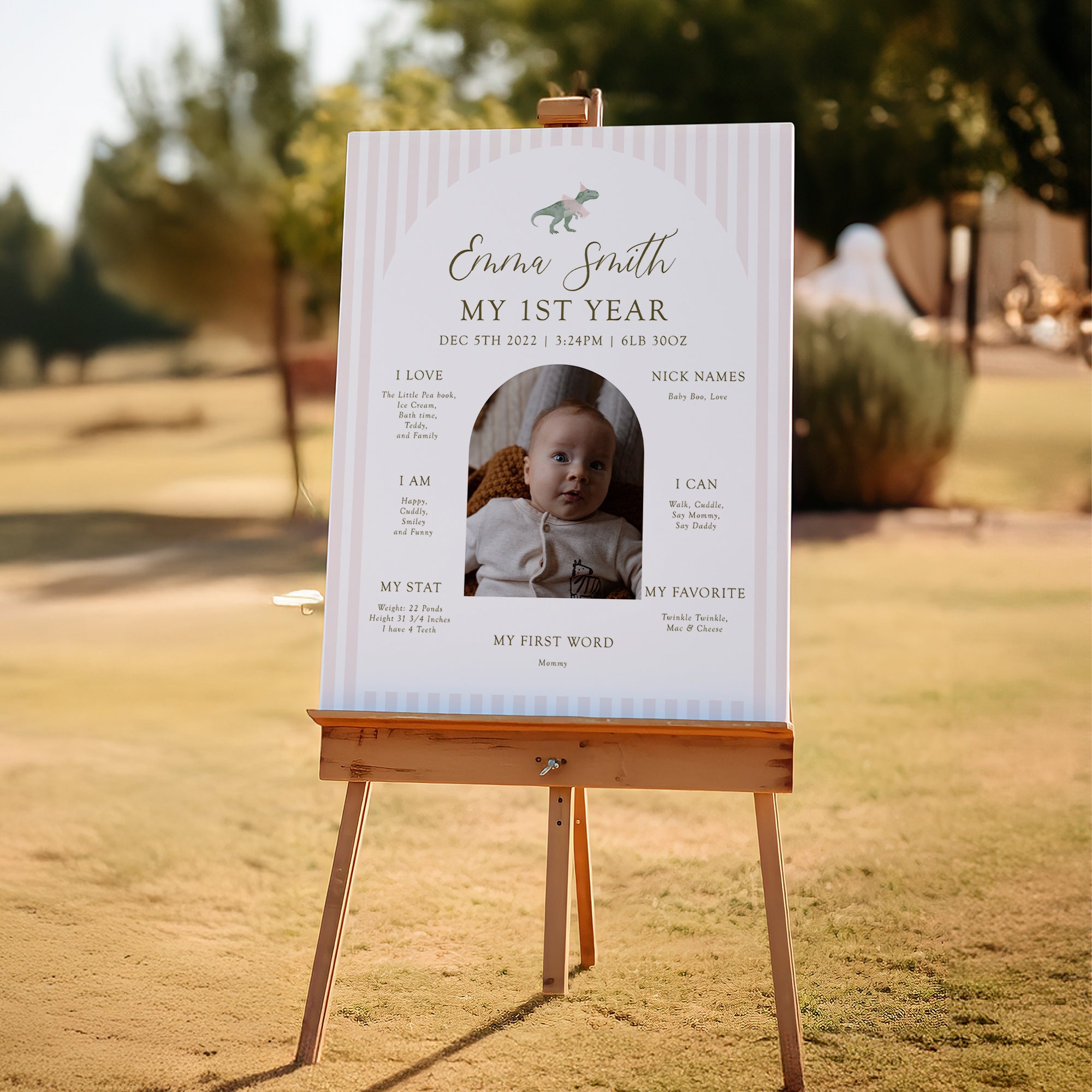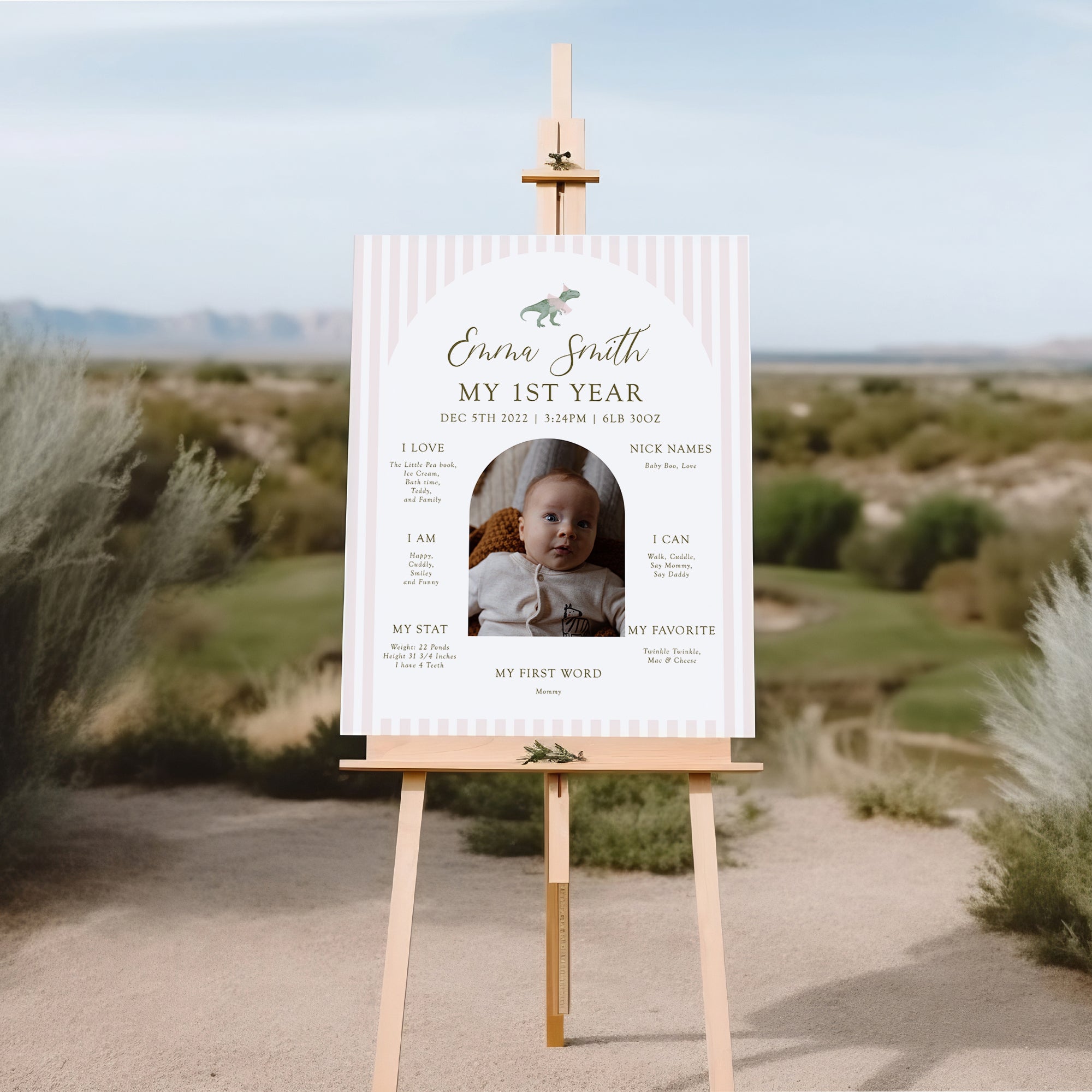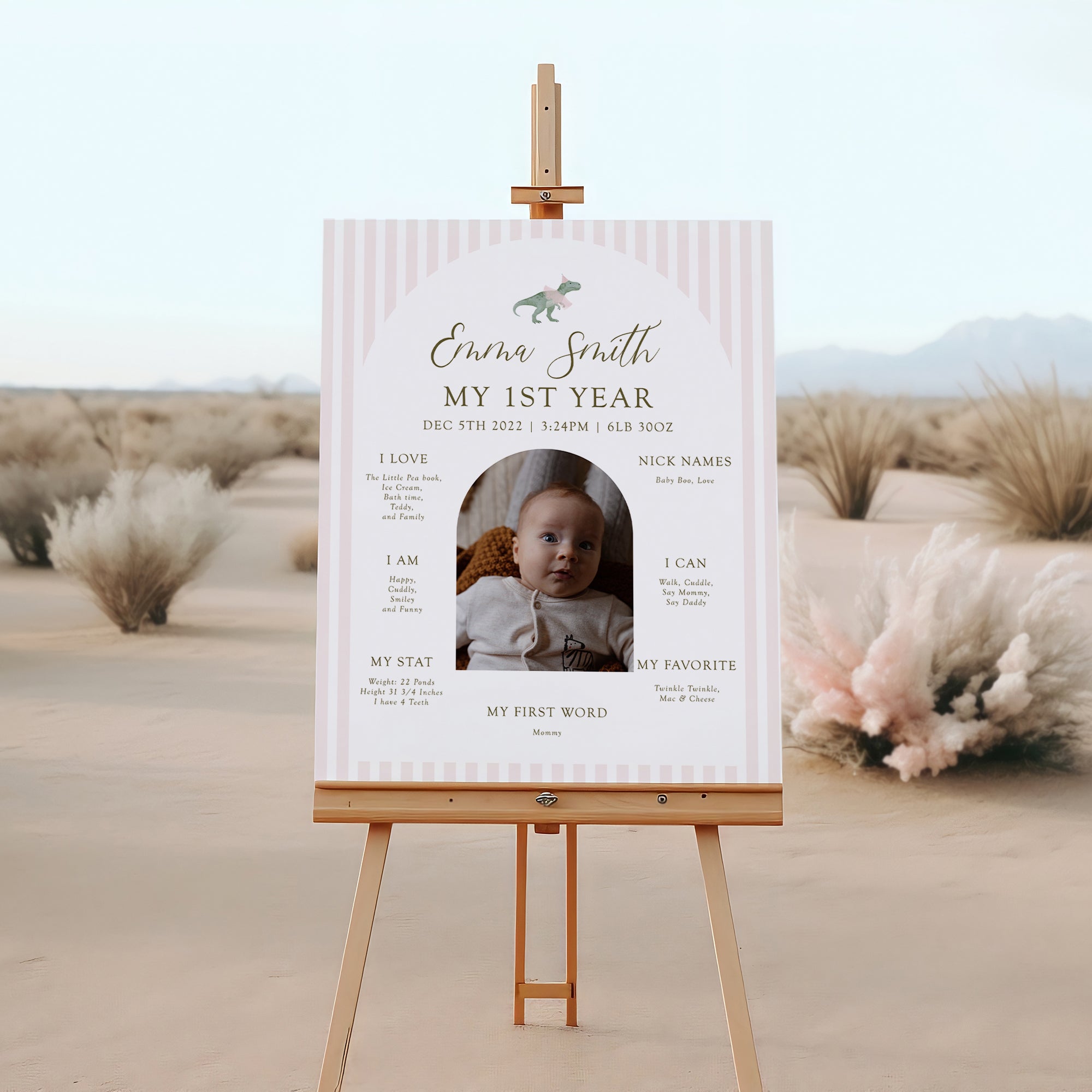 Celebrate your little one's special day with our Pink Tutu T-Rex Editable Birthday Milestone Board! Perfect for a dinosaur-themed birthday party for girls, this charming digital download decor allows you to personalize each milestone. Easily edit the details to highlight your child's achievements and create a unique keepsake. Instantly add a fun and festive touch to your celebration with this delightful design. Get ready to roar into another year of adventure! Download, edit, and print today!