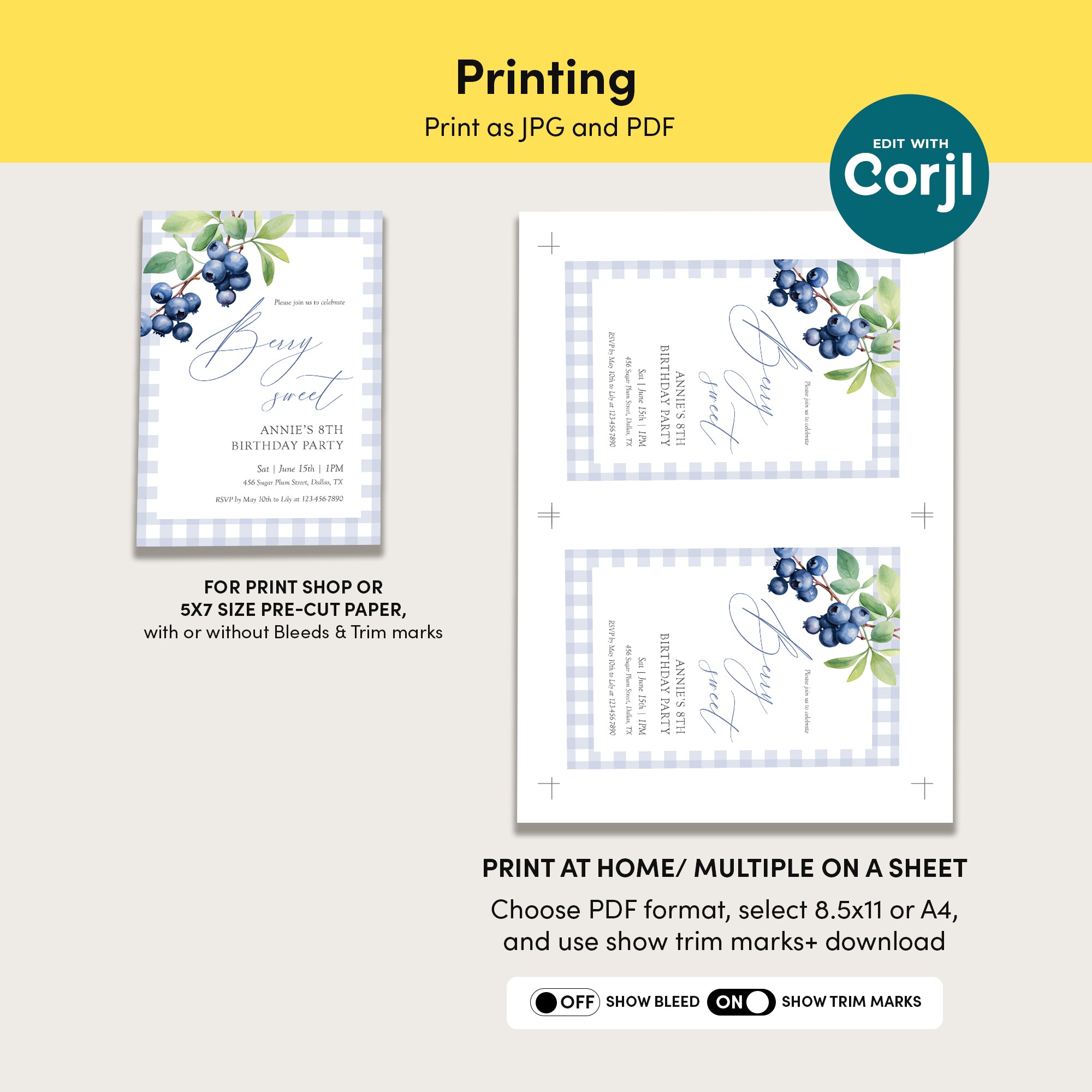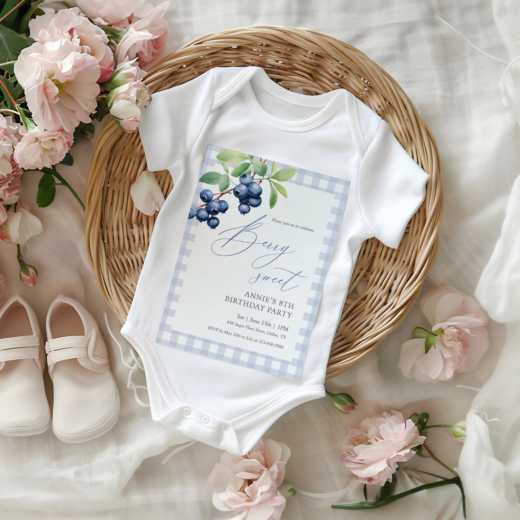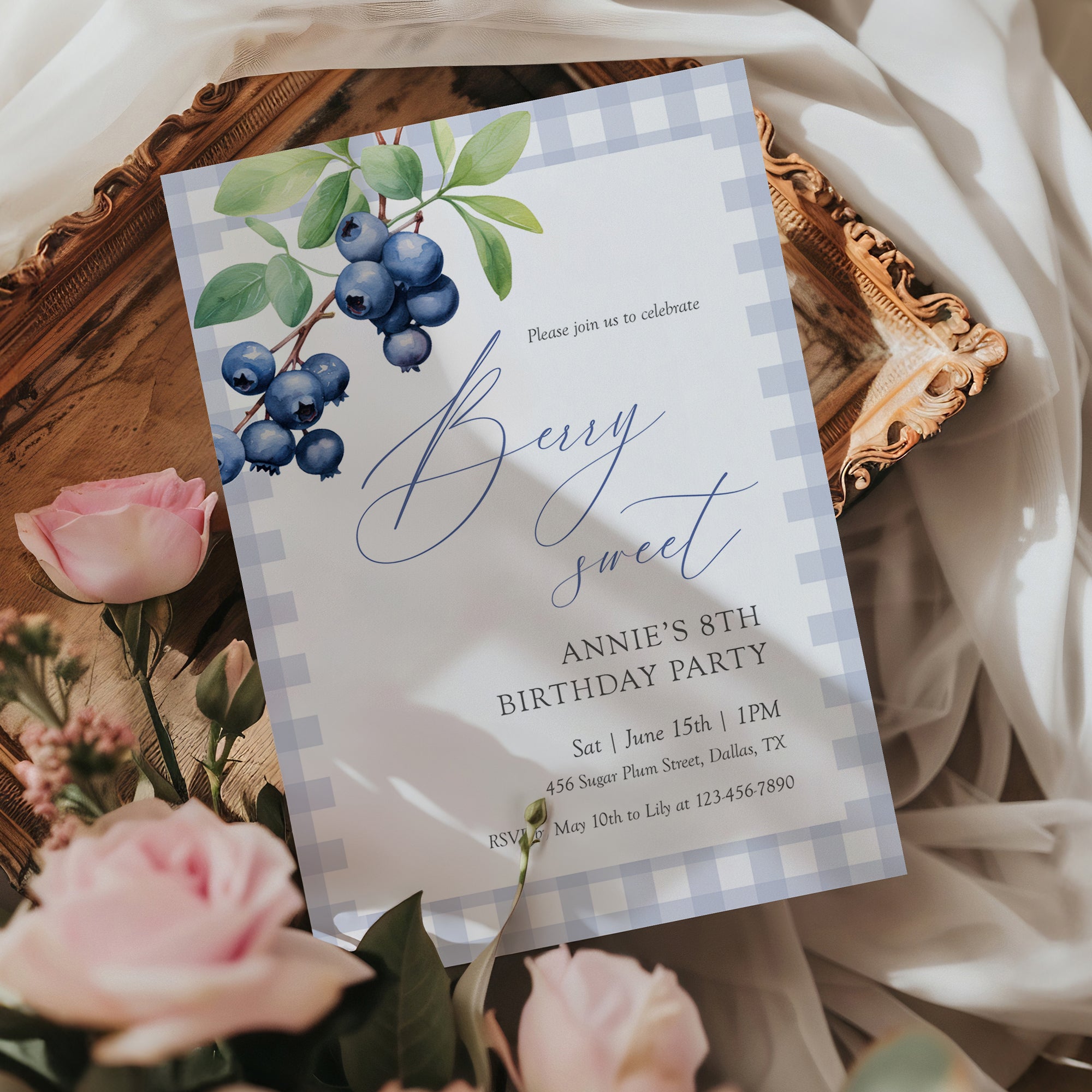 Celebrate your little one’s 8th birthday with our adorable Blueberry Berry Sweet Birthday Invitation! This charming blue gingham invitation is perfect for a fun-filled celebration. With our digital download, you can easily edit the template to add your personalized details. Simply customize, print, and send! Make their special day memorable with this delightful invite that captures the essence of summer fun. Order now and get ready to party in style!