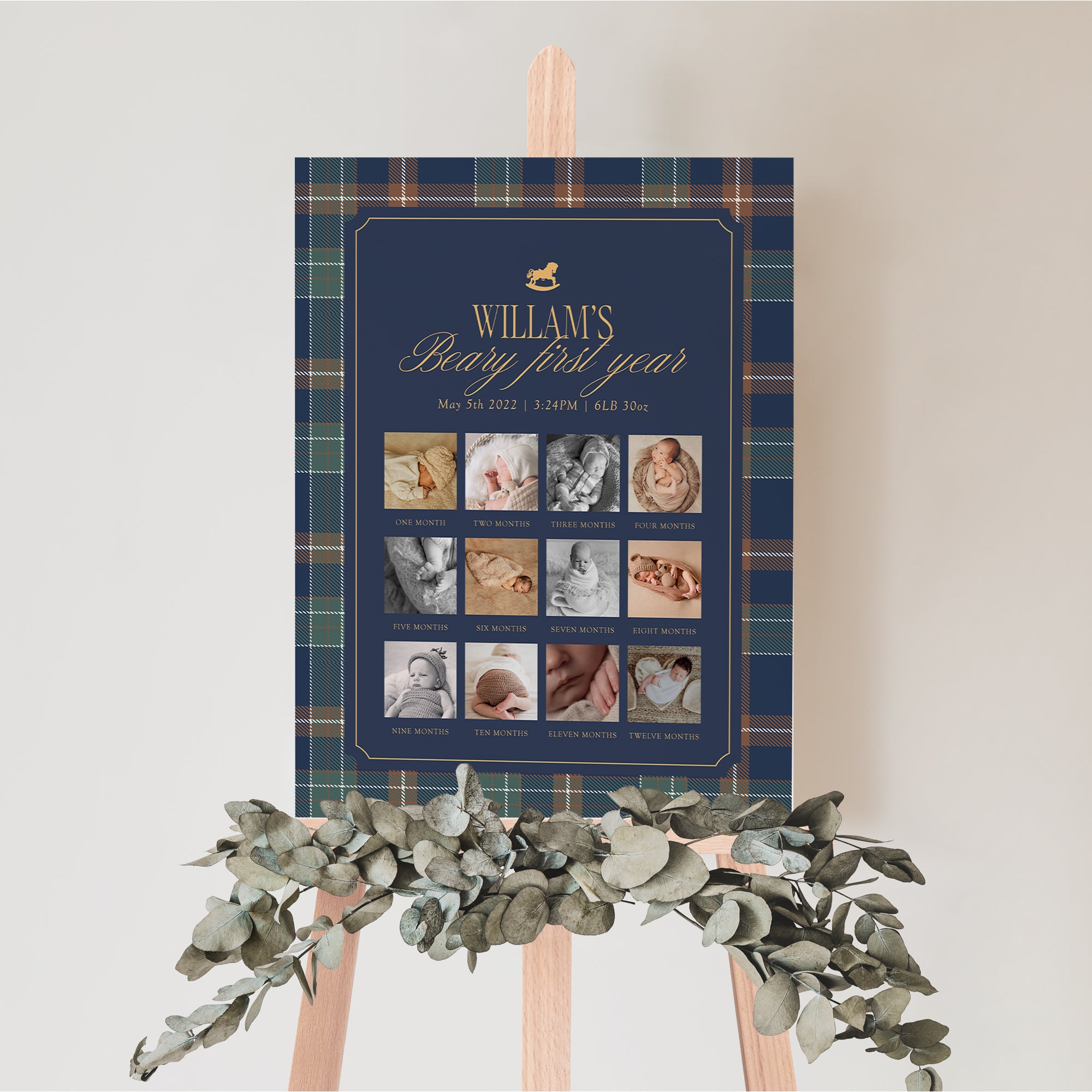 Celebrate your little one's first year with our Vintage Teddy Bear Navy Plaid Milestone Board Template! This adorable digital download features a charming design perfect for capturing and commemorating each month of growth. Ideal for birthday photos, this 12-month growth chart makes tracking milestones fun and stylish. Simply print and personalize for a delightful addition to any photo session. Create lasting memories with this unique keepsake today! Instant download for your convenience.