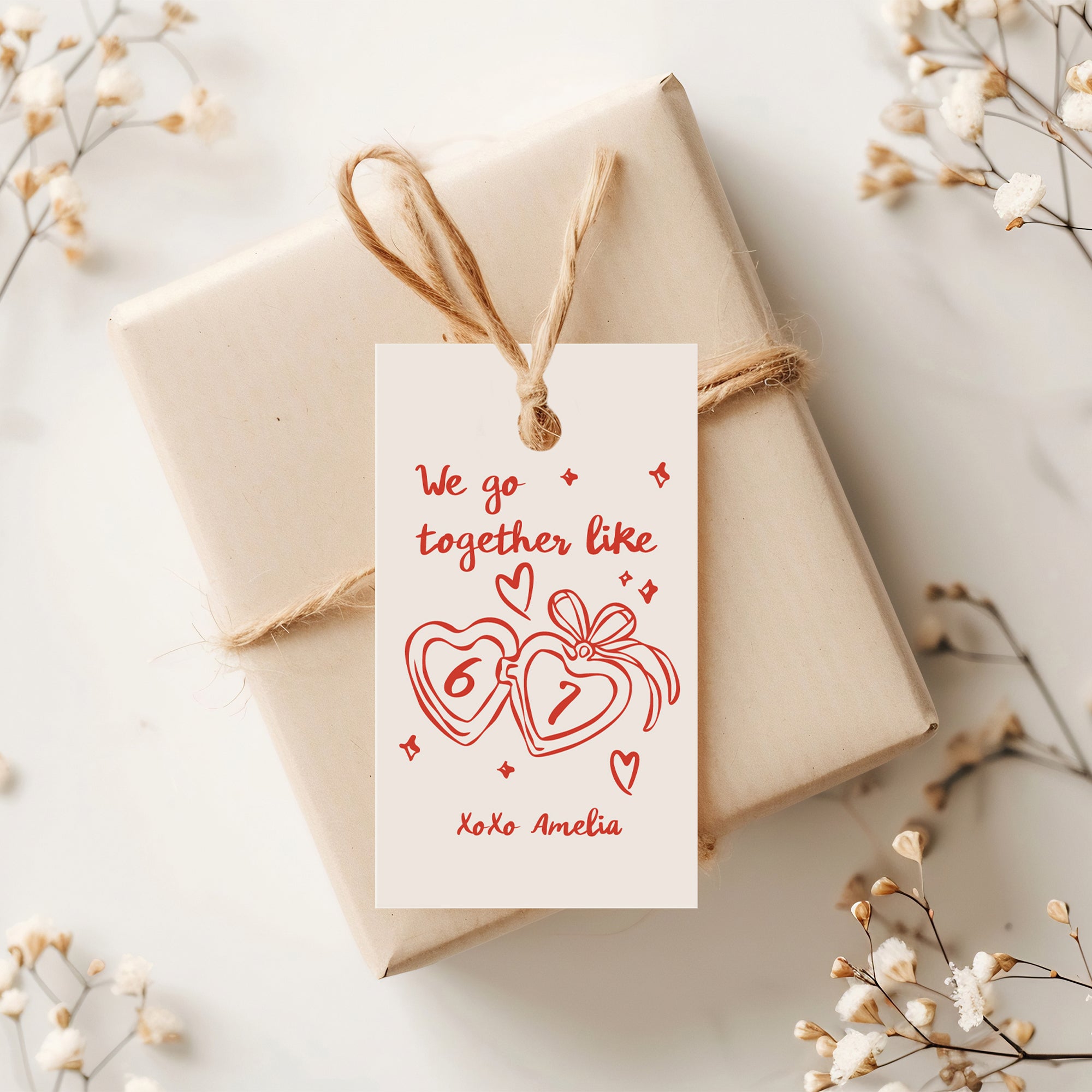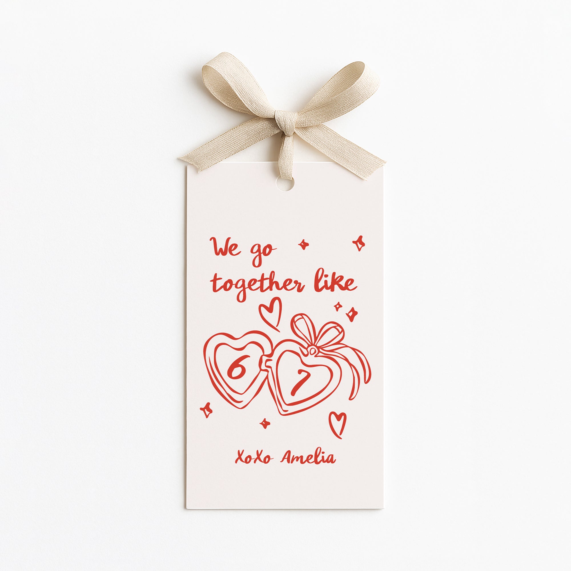 This funny and trendy Valentine’s Day gift tag features the popular “We go together like 6 7” phrase that kids and teens love!
