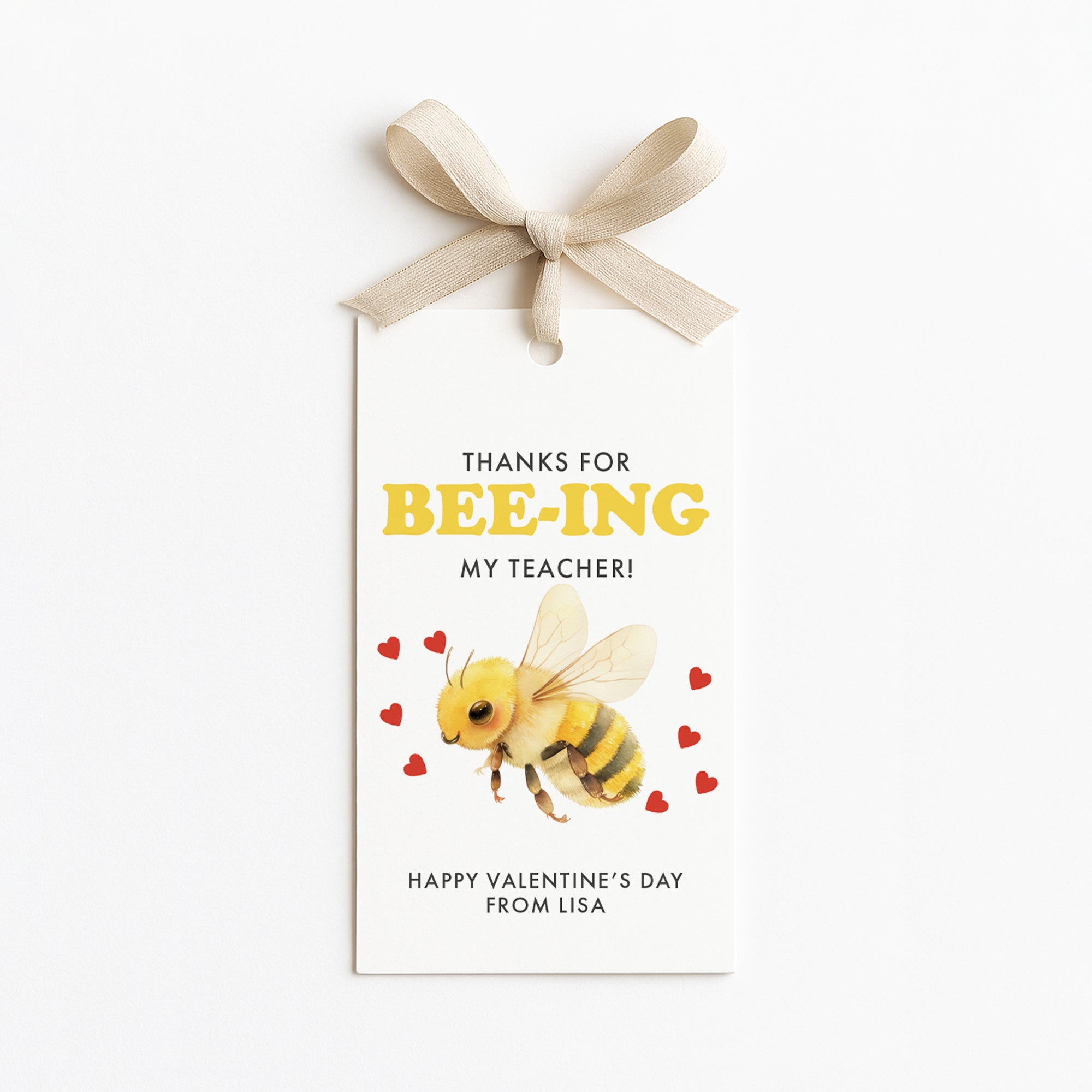 This adorable bee-themed Valentine’s Day gift tag for teachers is a sweet way for kids to say thank you.