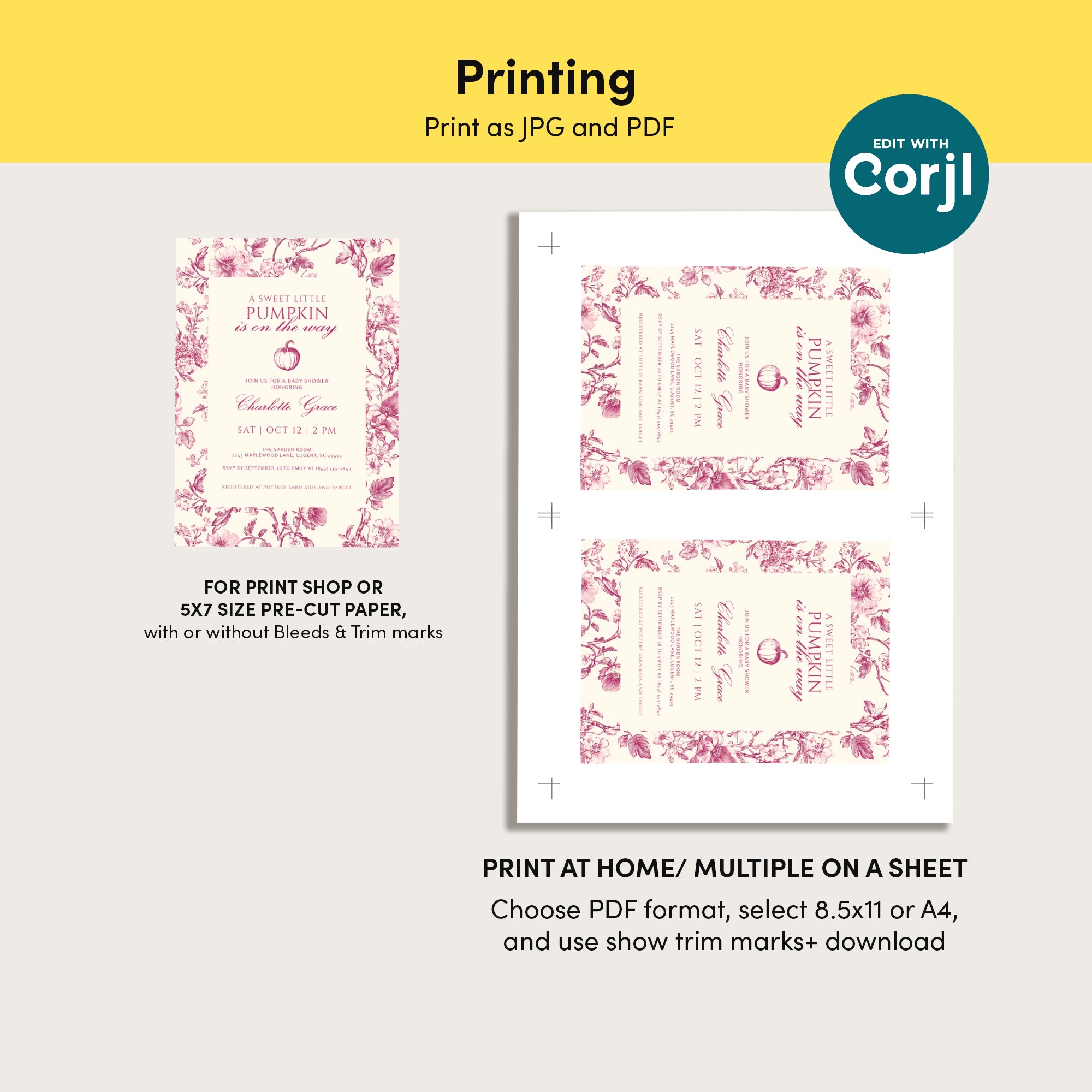 After purchase, you'll receive an email within minutes with access to your item. You can edit directly in your web browser using Corjl.com. No physical items will be mailed (Instant Download).