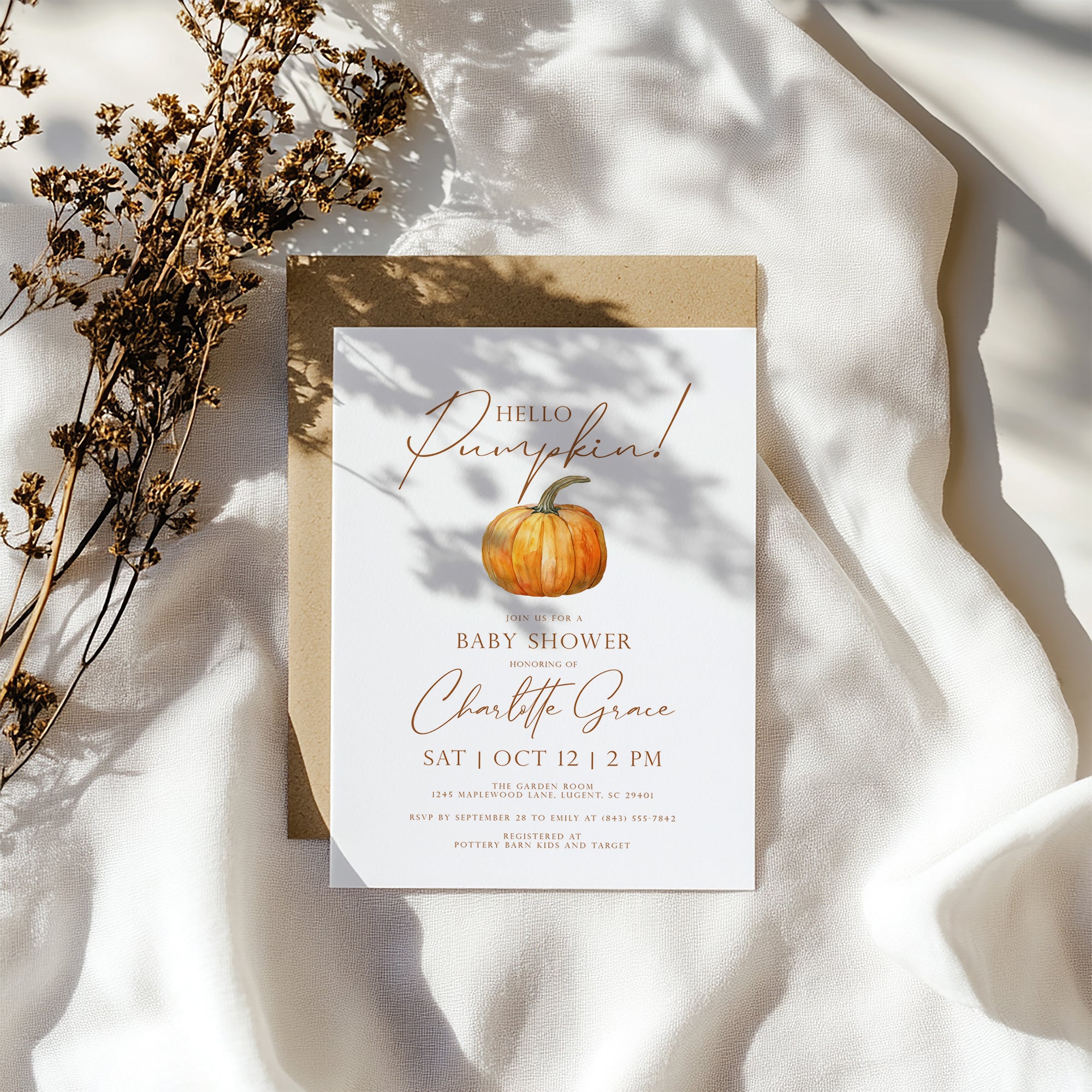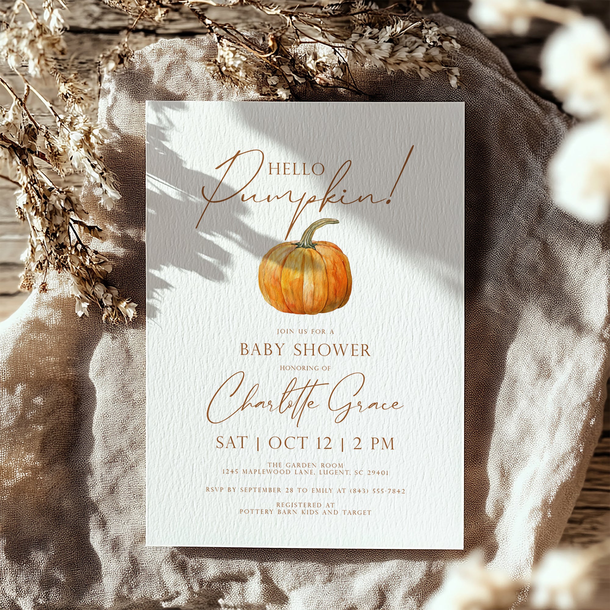 2019 hello pumpkin baby shower invitation template