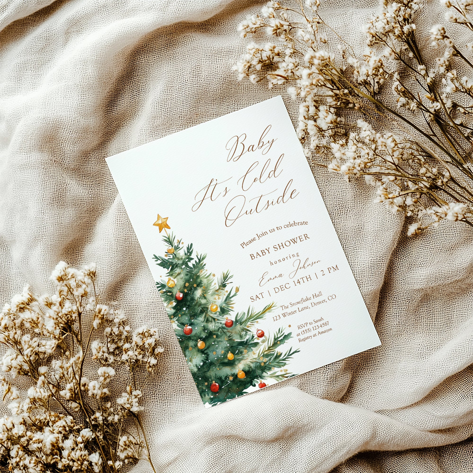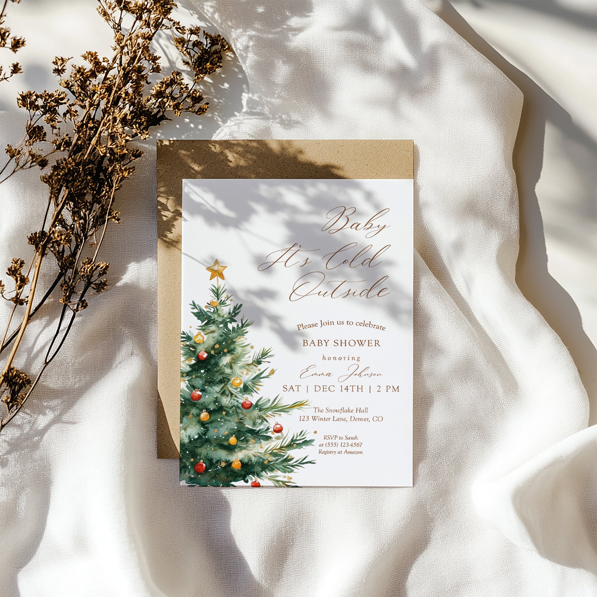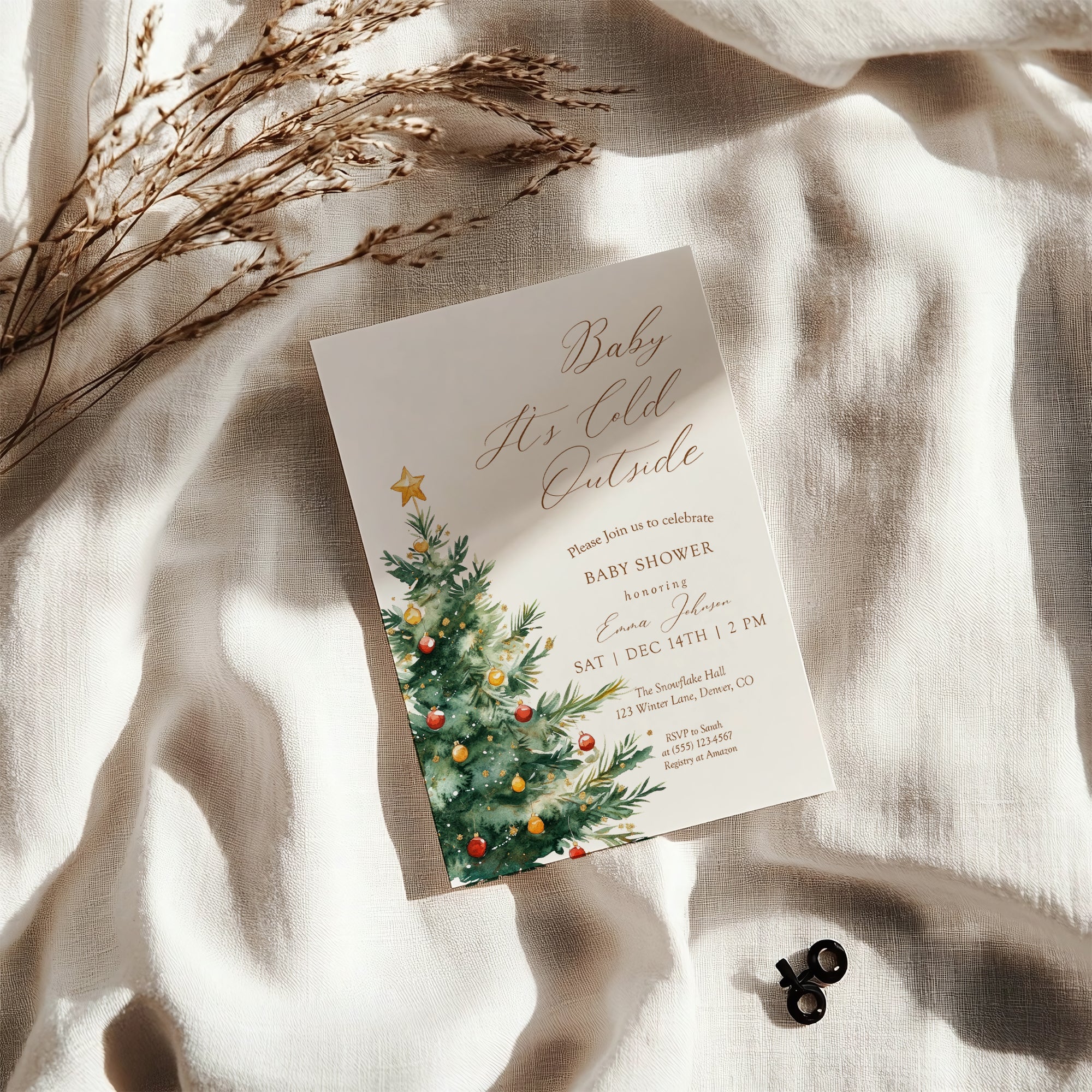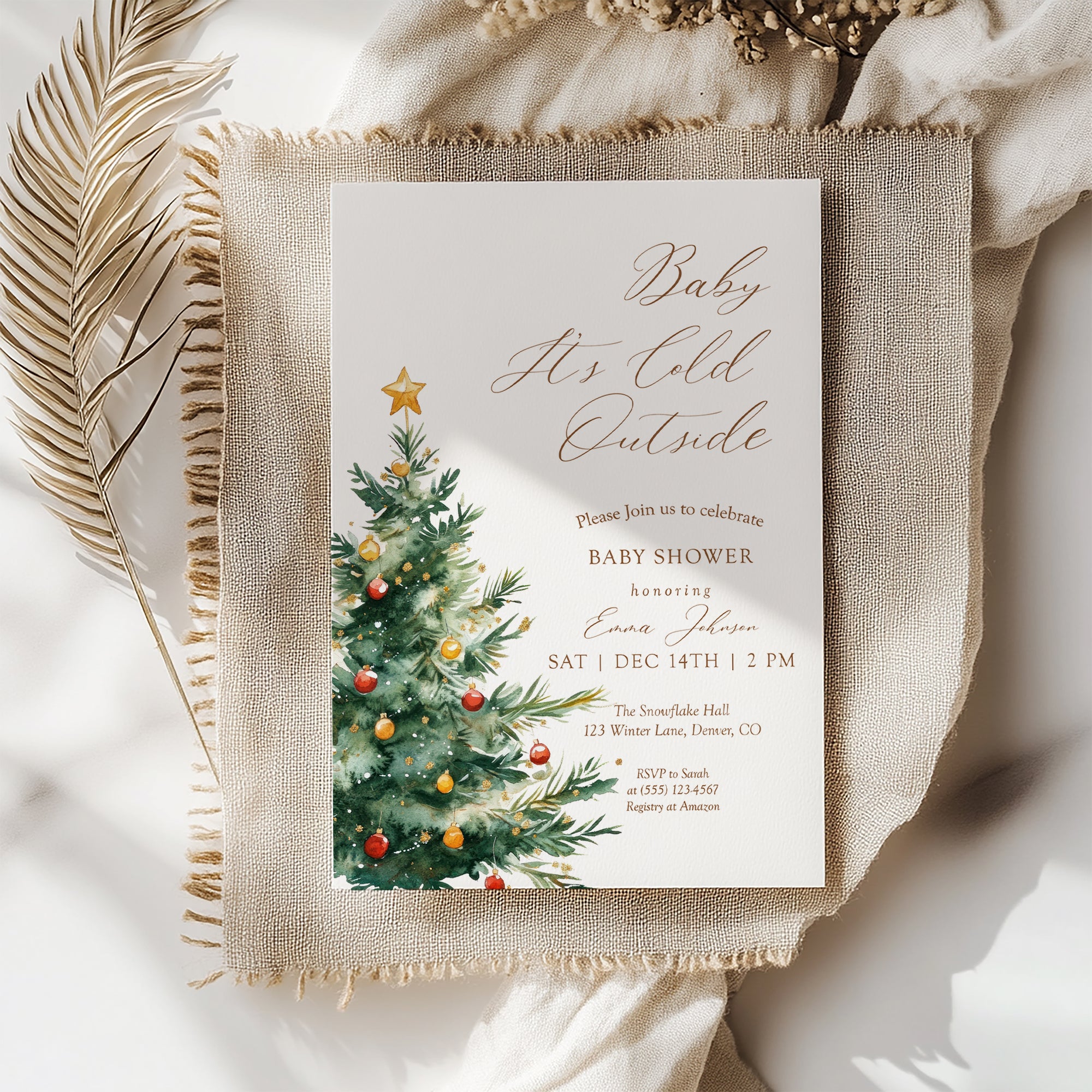 2024 Winter Christmas tree baby it's cold outside invitation template