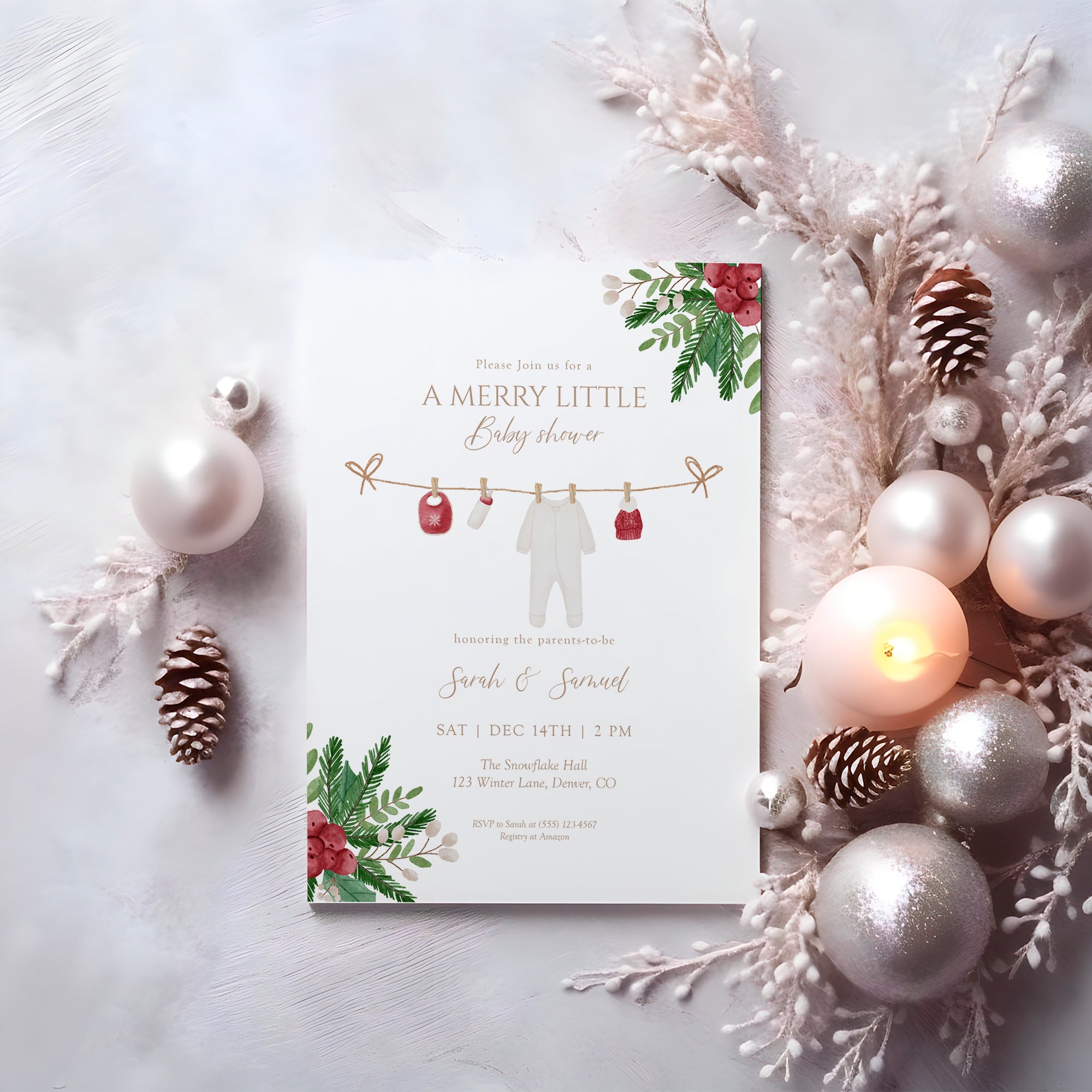 Celebrate your little one’s arrival with our Winter Baby Shower Invitation Template! This Editable Merry Little Baby Shower Invite is designed to add a festive touch to your celebration. Perfect for a cozy holiday gathering, this Christmas Holiday Baby Shower Digital Download allows you to customize the details in just a few clicks. Simply edit, print, and share with your loved ones. Make your baby shower memorable with this charming invite! Download now and get started on your delightful winter celebration!