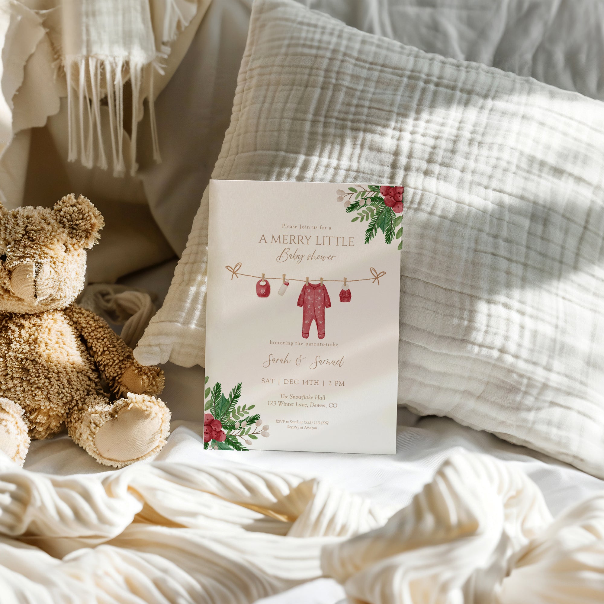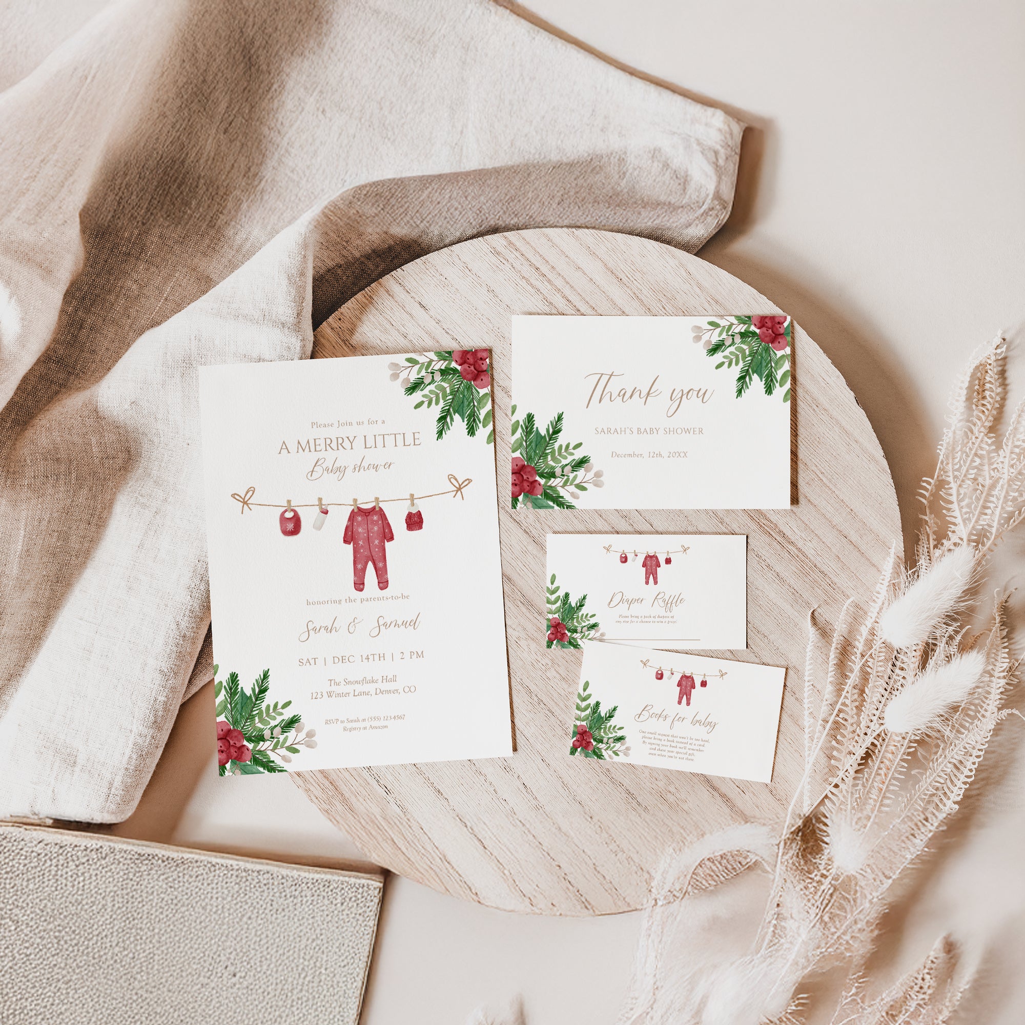 Celebrate the joy of the season with our Winter Christmas Holiday Festive Boy Baby Shower Invitation Set! This editable template includes charming designs for your special occasion. Plus, brighten your event with our unique Books for Baby and Diaper Raffle Ticket cards. Enjoy the convenience of instant digital download, allowing you to personalize and print from the comfort of your home. Make your baby shower merry and bright with this delightful set! Perfect for a cozy winter celebration!