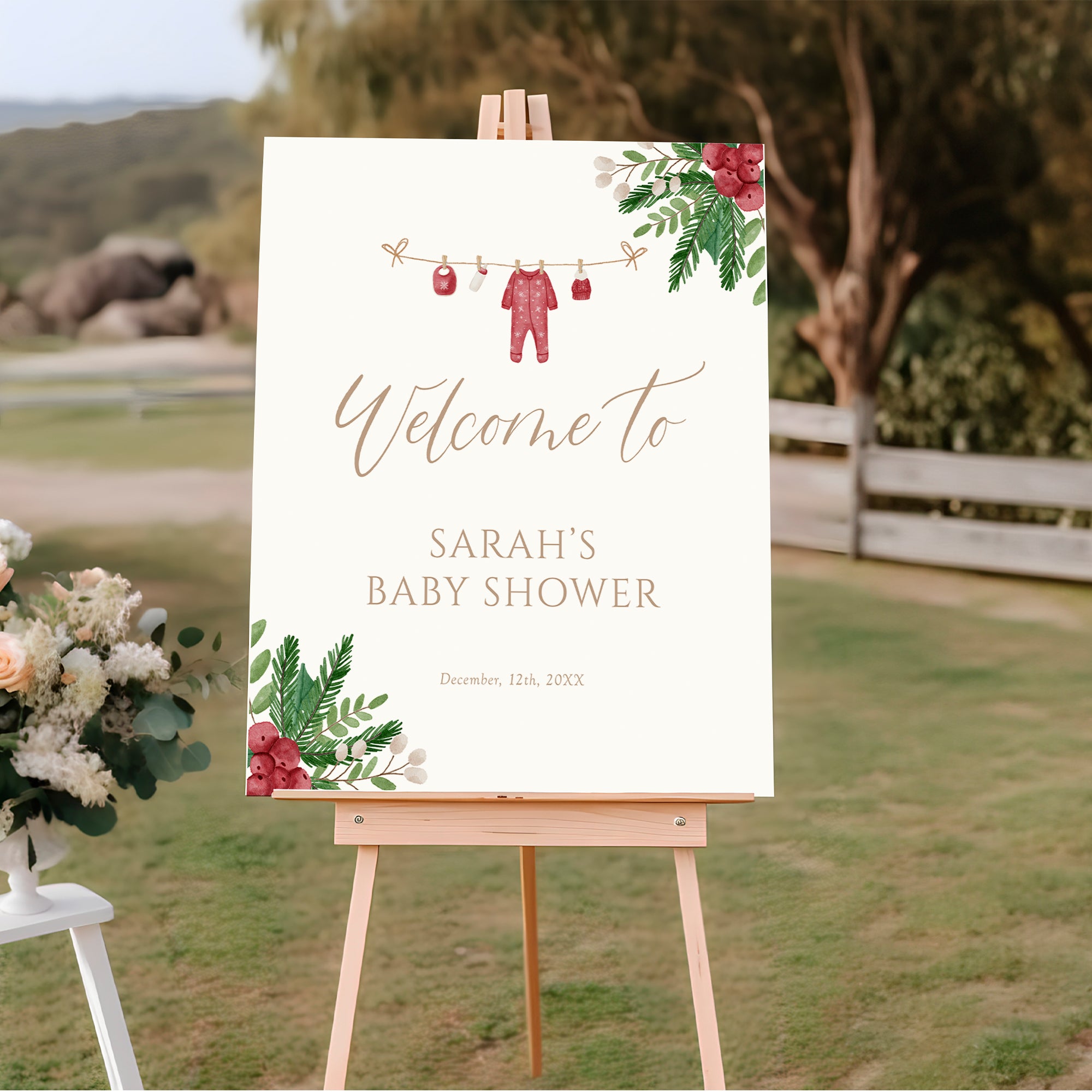 Welcome your guests in style with our Winter Baby Shower Welcome Sign! Perfect for a festive Christmas-themed baby shower, this digital download features a beautifully designed, editable template. Customize the sign to fit your celebration and impress your guests with a personal touch! Easy to print at home or your favorite print shop. Make your baby shower unforgettable with this charming decor. Get ready to celebrate the upcoming arrival in a winter wonderland!