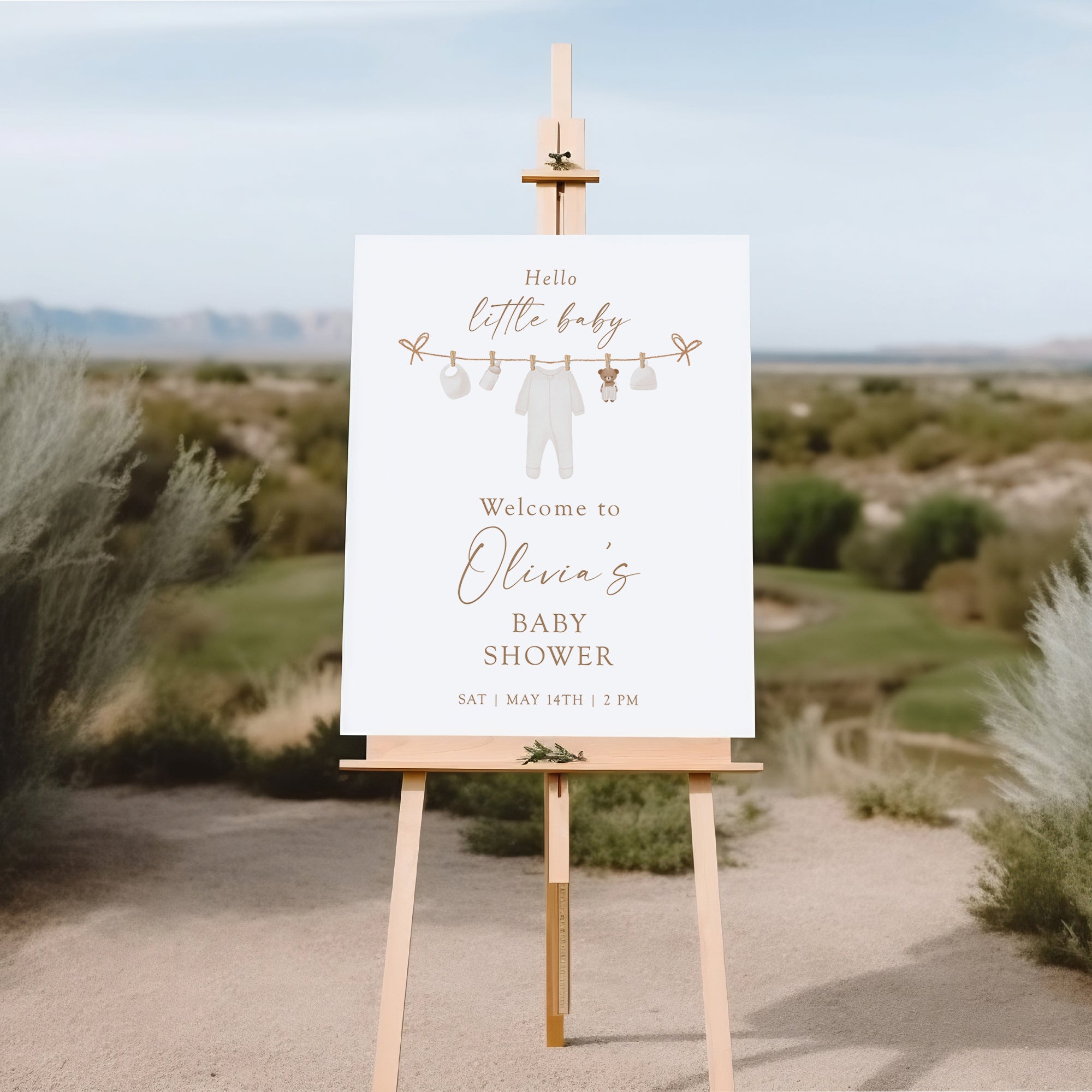 Welcome your guests with our Neutral Hello Little Baby Baby Shower Welcome Sign Template! This modern and cute design is perfect for celebrating your little one. Easily customize it with your personal touch using our editable template. Ideal for a stylish baby shower, this digital download makes decorating a breeze. Simply download, edit, and print to create elegant decor that sets the perfect tone for your celebration. Make your baby shower truly special with this charming welcome sign!
