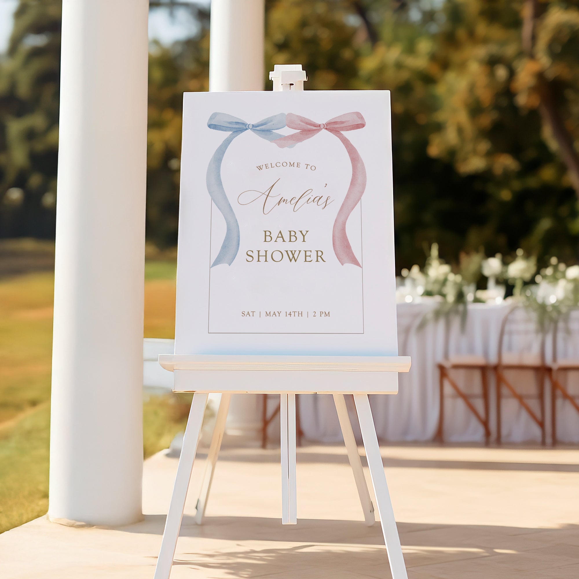 Celebrate your special moment with our Pink Blue Bow Coquette Gender Reveal Baby Shower Sign! This minimal and elegant digital download is perfect for your event. Customize effortlessly with our editable template on Corjl—no design skills needed! Enhance your baby shower decor with a stylish sign that showcases the excitement of your baby’s gender reveal. Download, personalize, and print to create a memorable focal point for your celebration. Let the festivities begin!